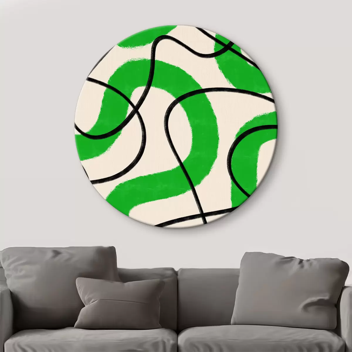 Ronde schilderijen Groen en wit patroon Nr r37573