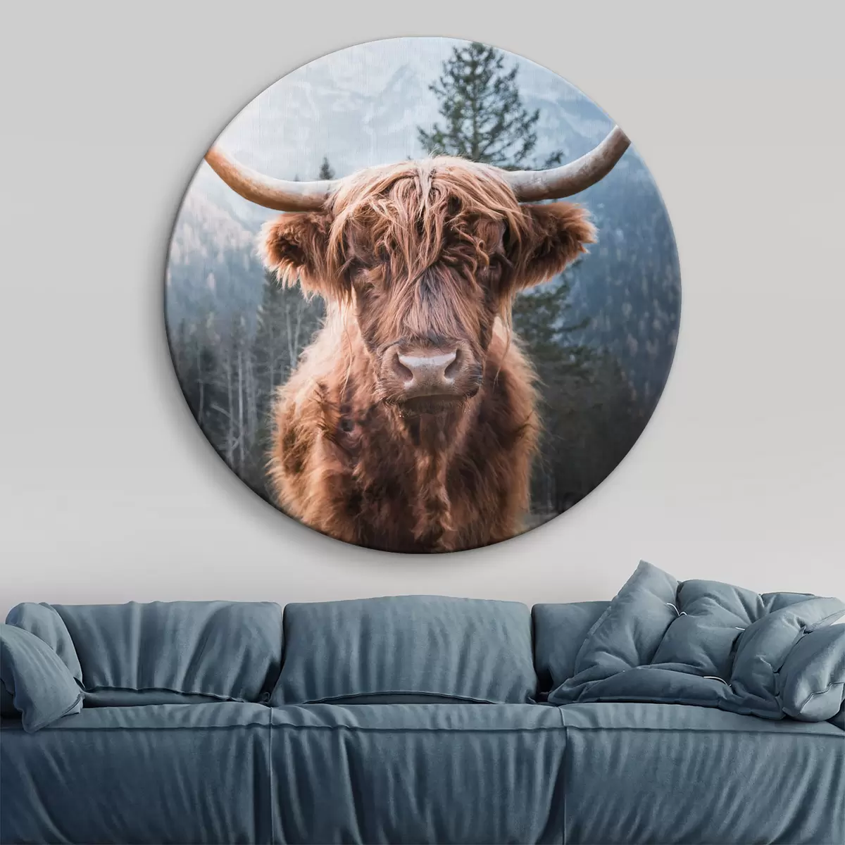 Ronde schilderijen Pluizige koe Nr r37629