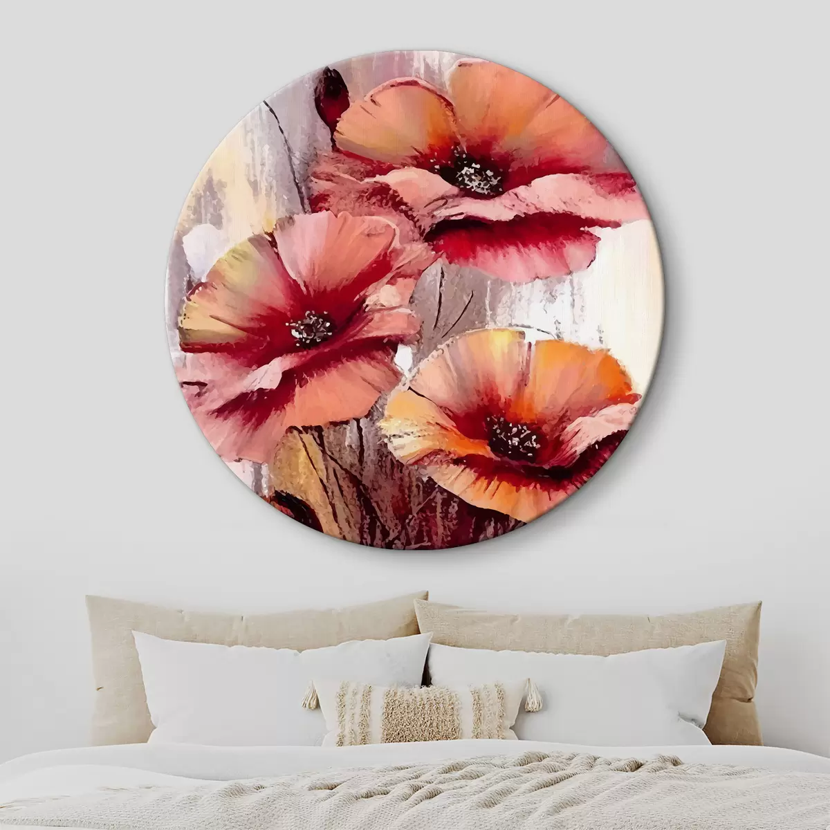 Ronde schilderijen Rode klaprozen in aquarel Nr r37743