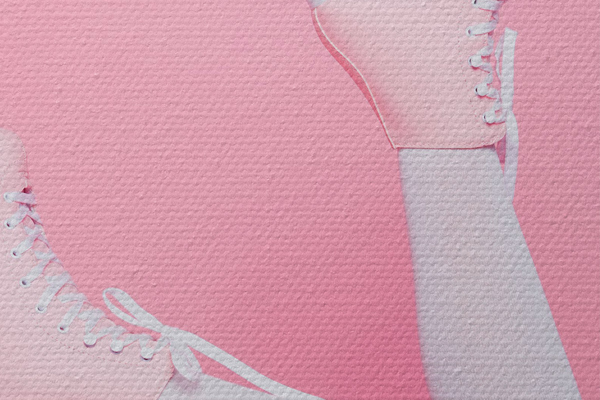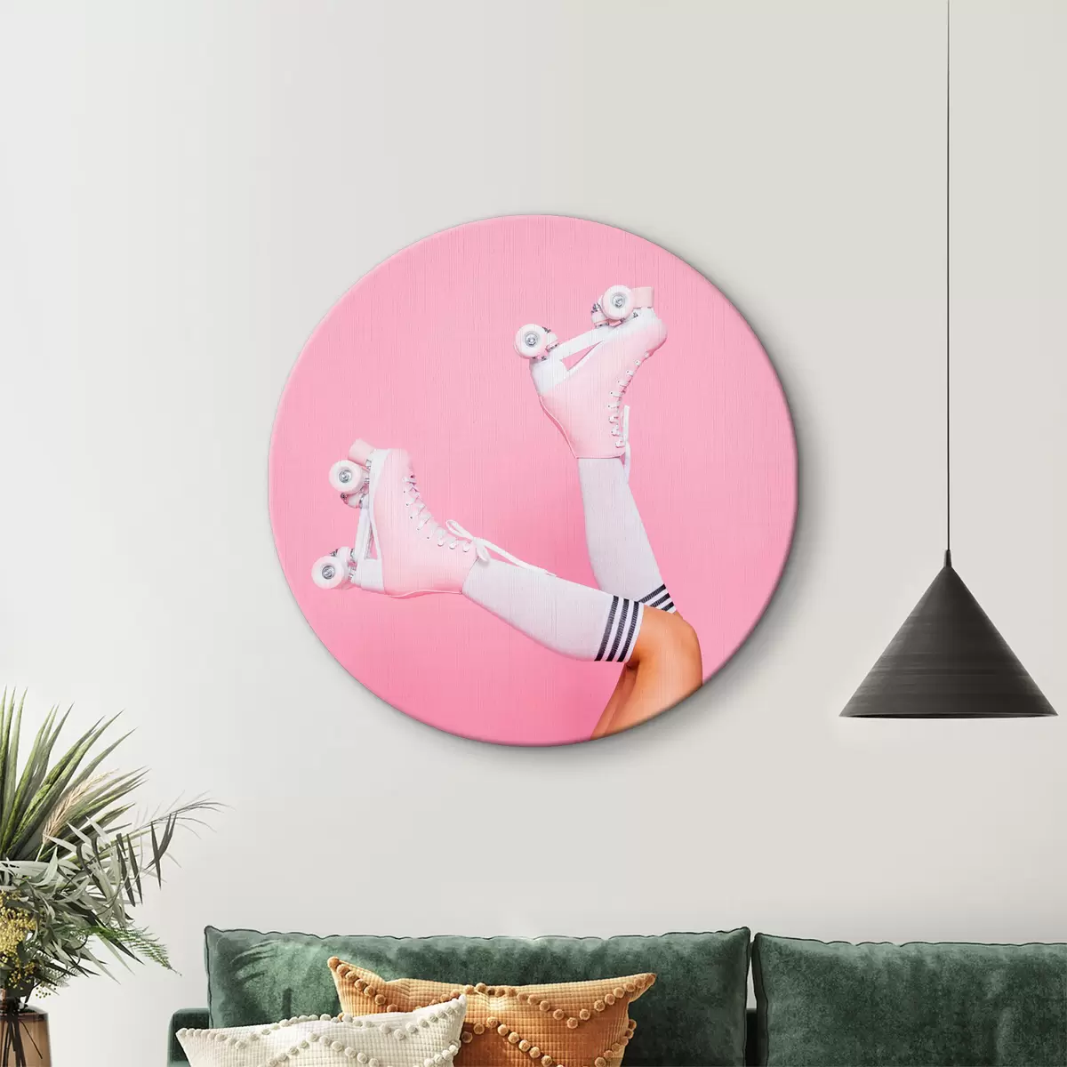 Ronde schilderijen Rolschaatsen op roze achtergrond Nr r37763
