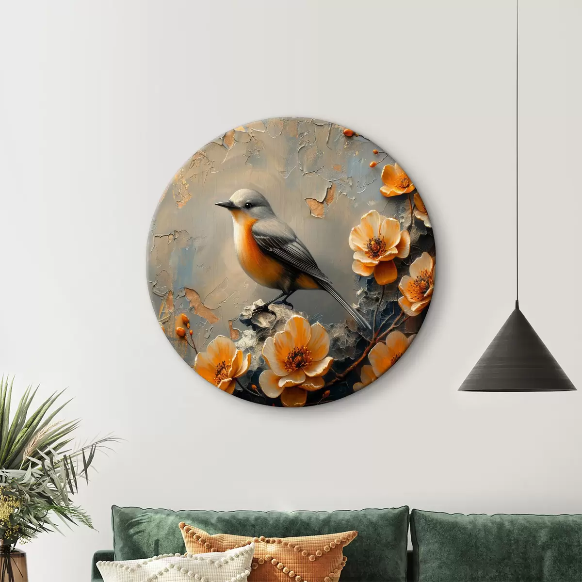 Ronde schilderijen Vogel op een tak met bloemen Nr r37770