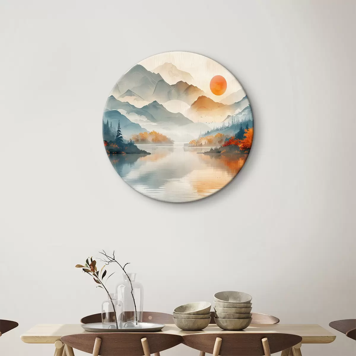 Ronde schilderijen Landschap met bergen en water Nr r37780