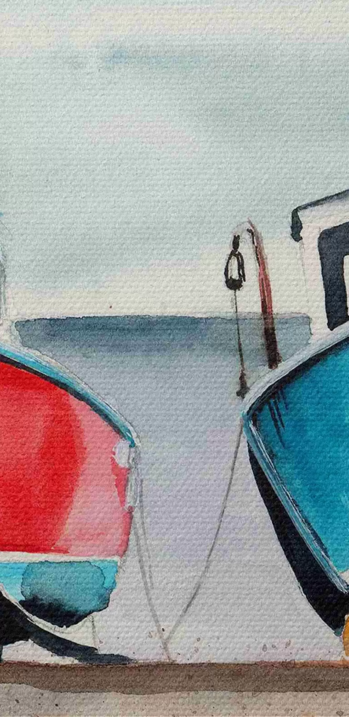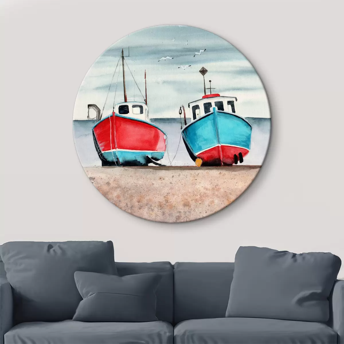 Ronde schilderijen Drie boten op de oever Nr r37787