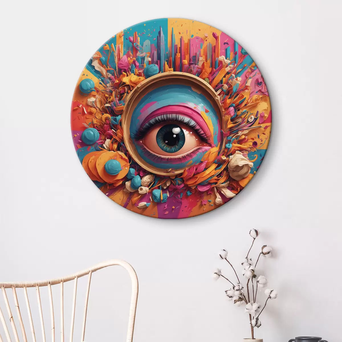 Ronde schilderijen Een kleurrijk oog omringd door een cirkel Nr r37791