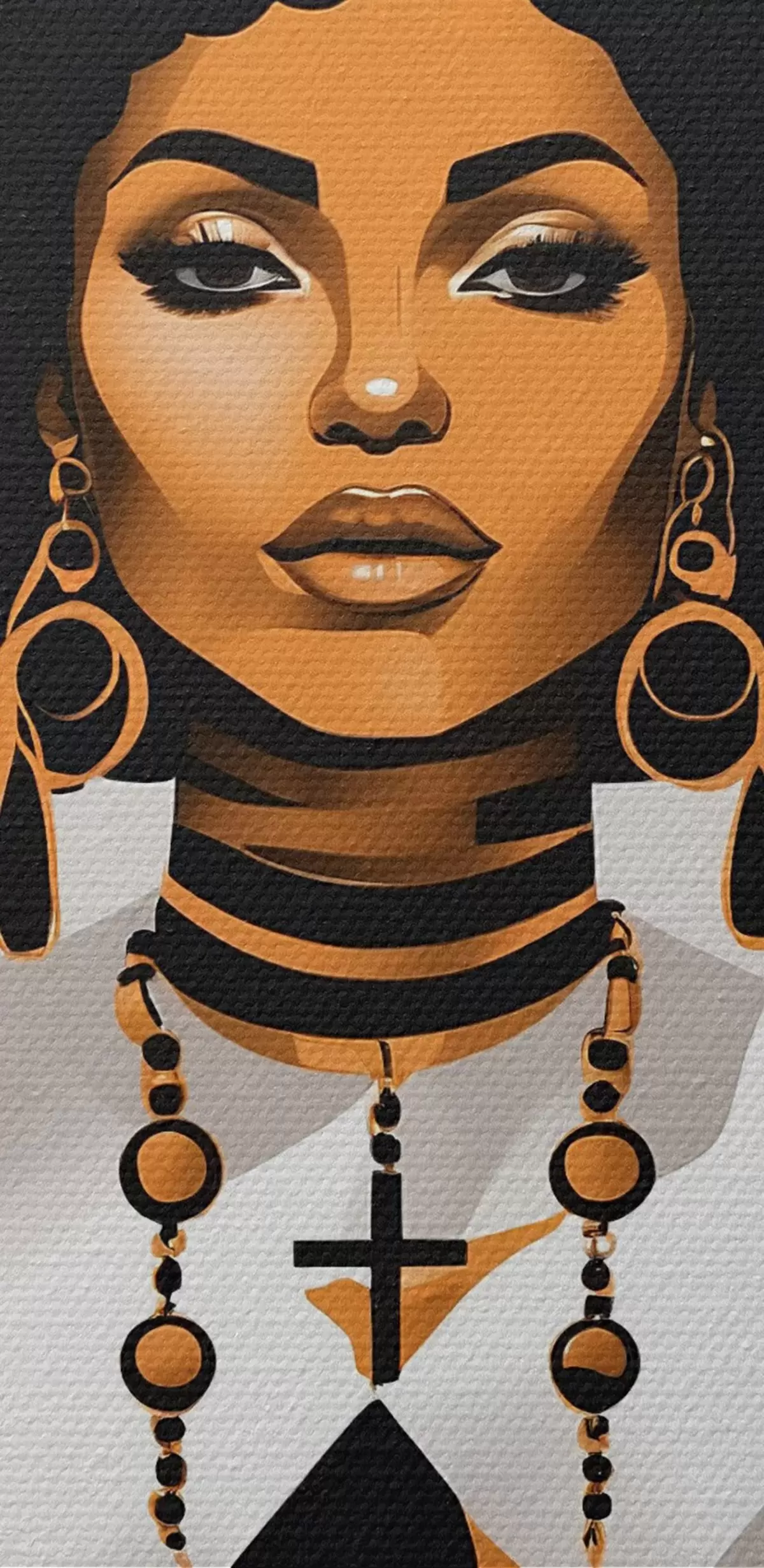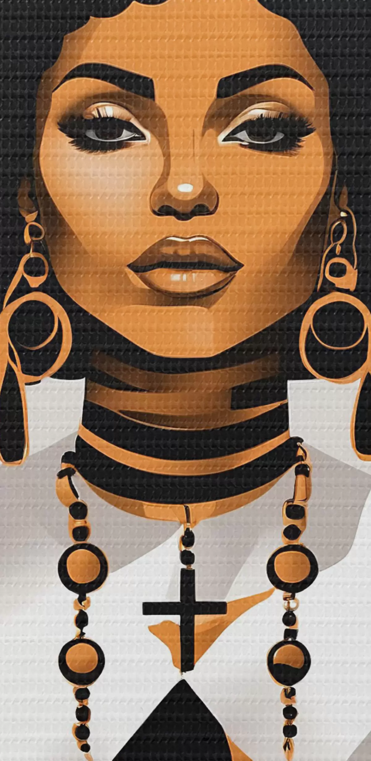 Ronde schilderijen Een vrouw met een grote afro in een wit shirt en oorbellen Nr r37793