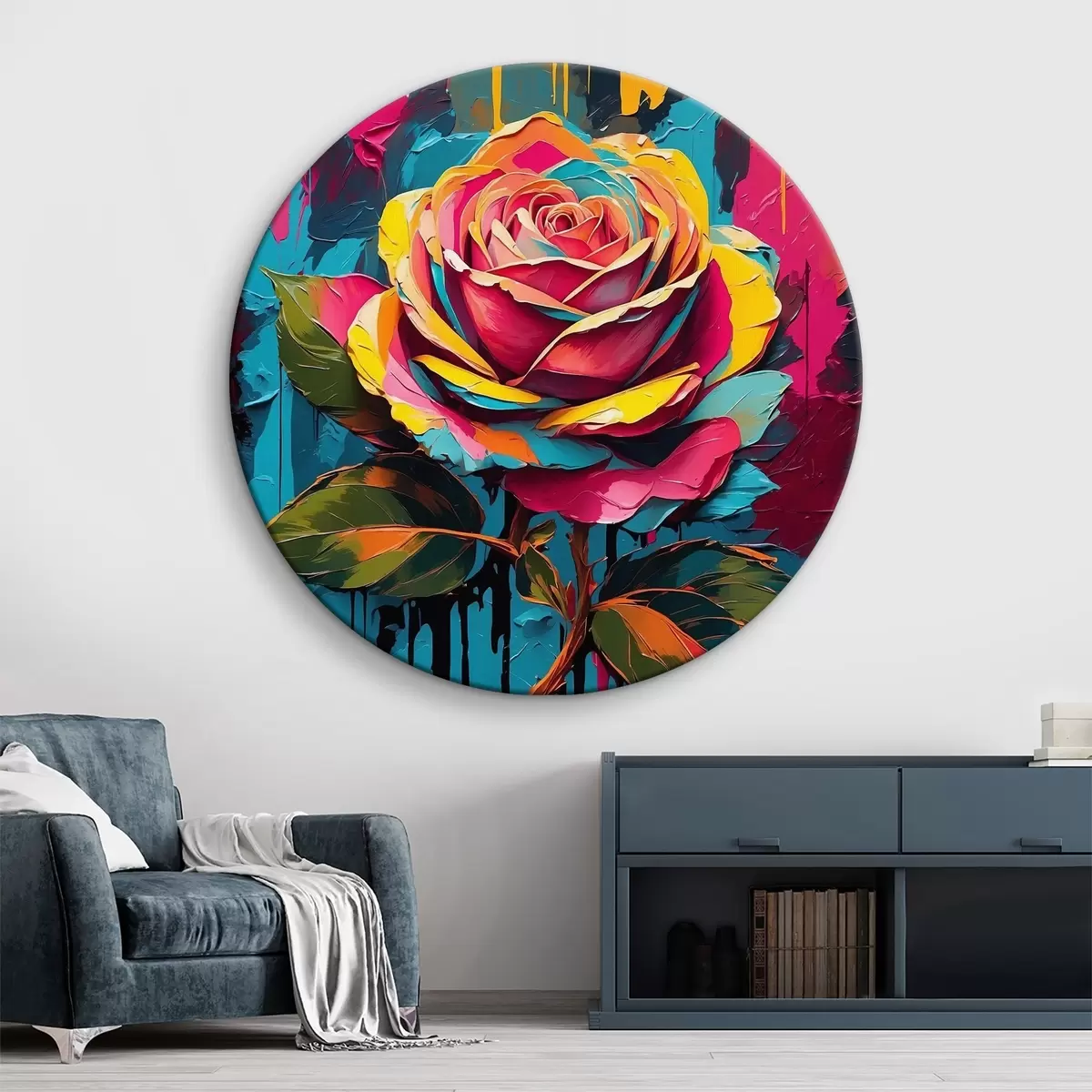 Ronde schilderijen Een kleurrijke roos schilderen r37806