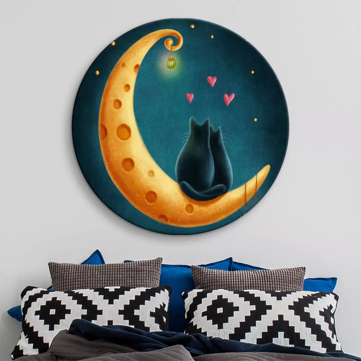 Ronde schilderijen Verliefde katten onder het maanlicht Nr r37836