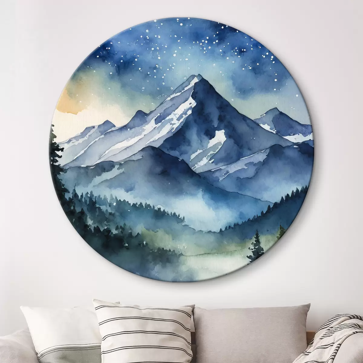 Ronde schilderijen Majestueuze bergen onder de sterrenhemel Nr r37945