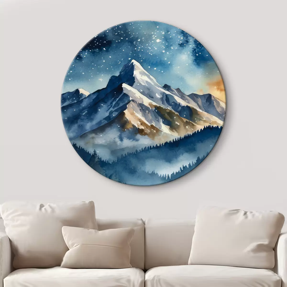 Ronde schilderijen Majestueuze bergen onder de sterrenhemel Nr r37947