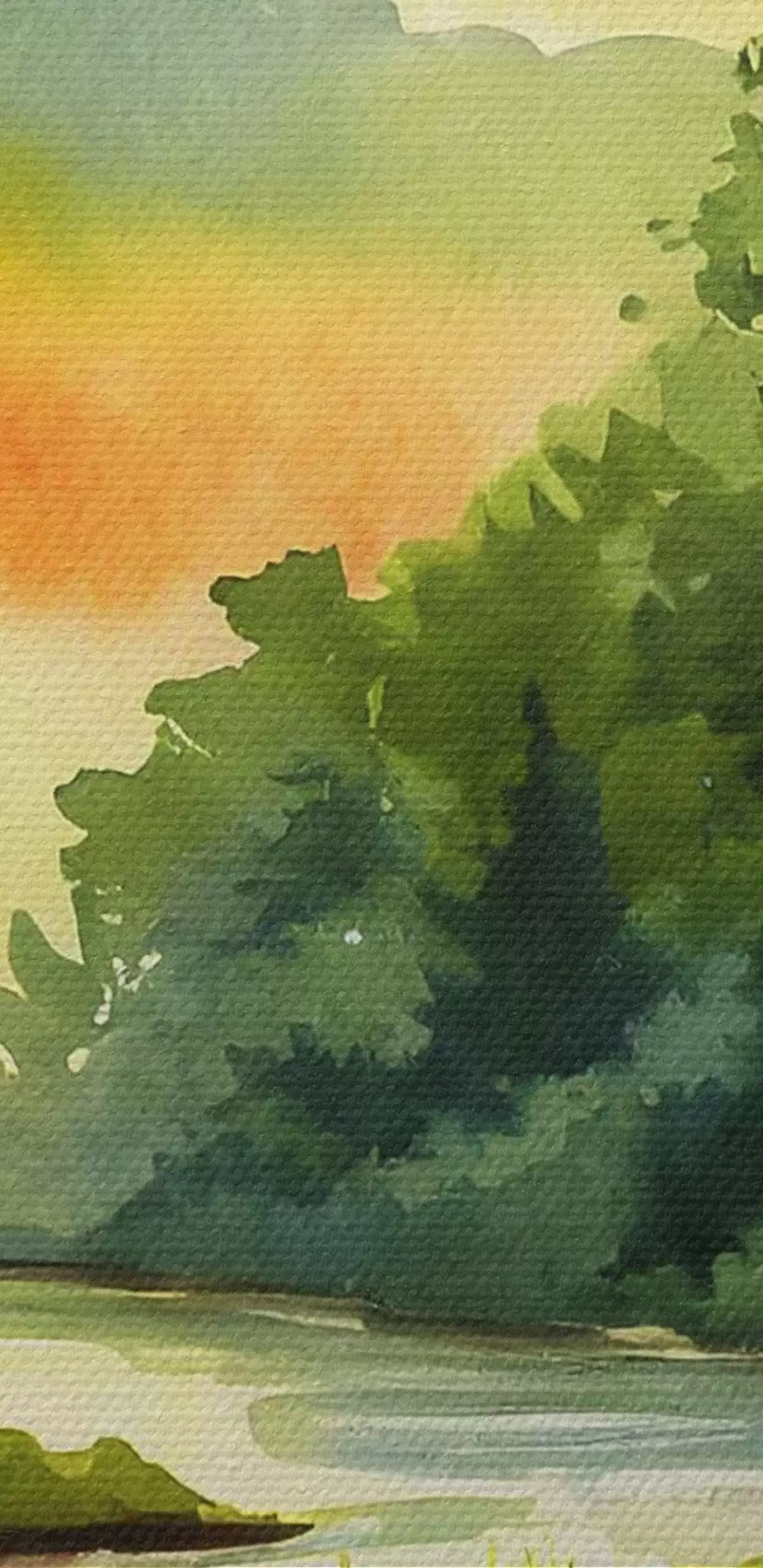 Ronde schilderijen Zonsondergang op de rivier, bos, aquarel, zonsondergang, groen, natuur Nr r37949