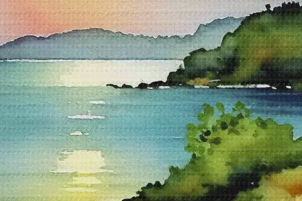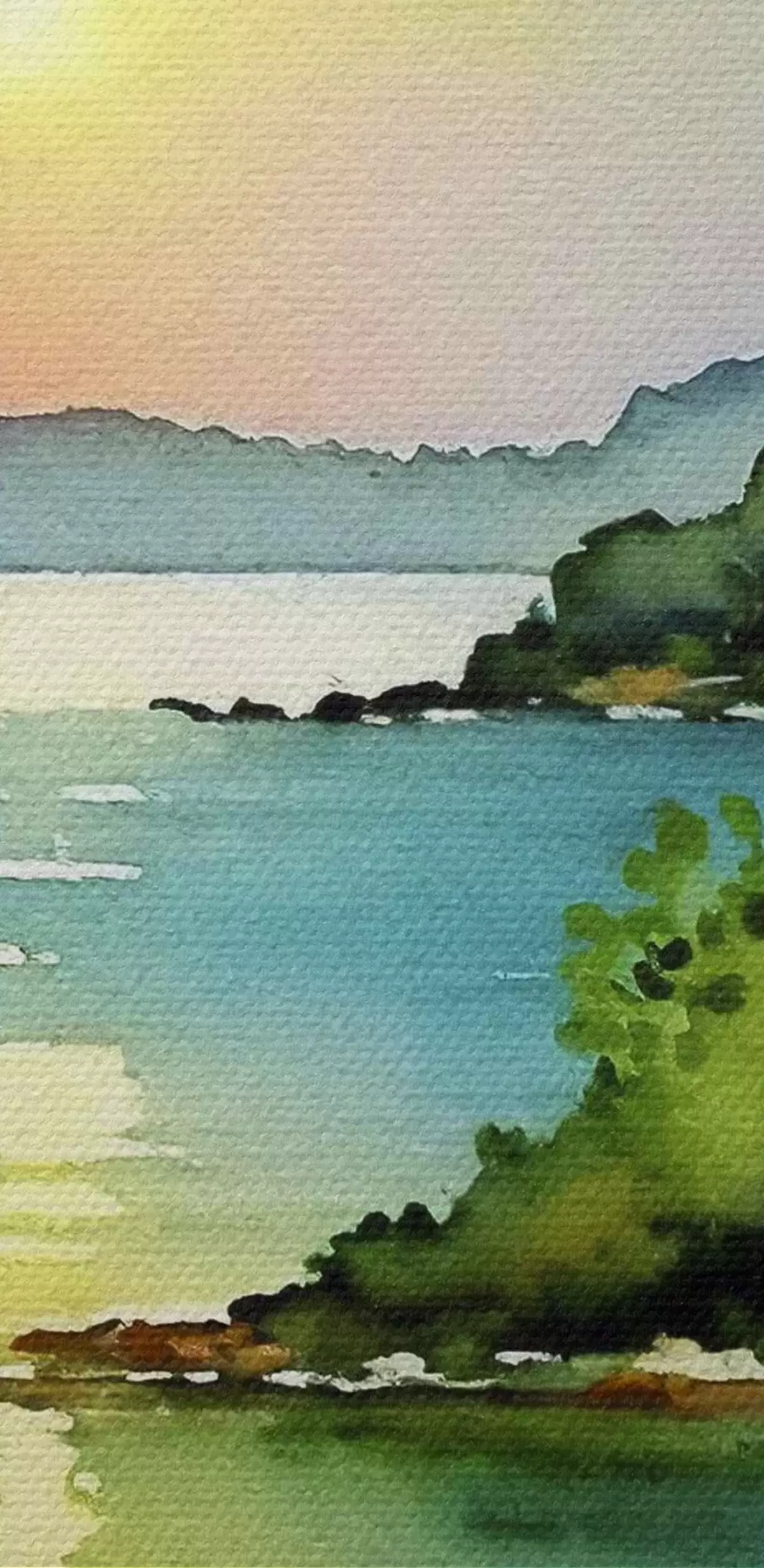 Ronde schilderijen Kalm water en glooiende heuvels Nr r37956