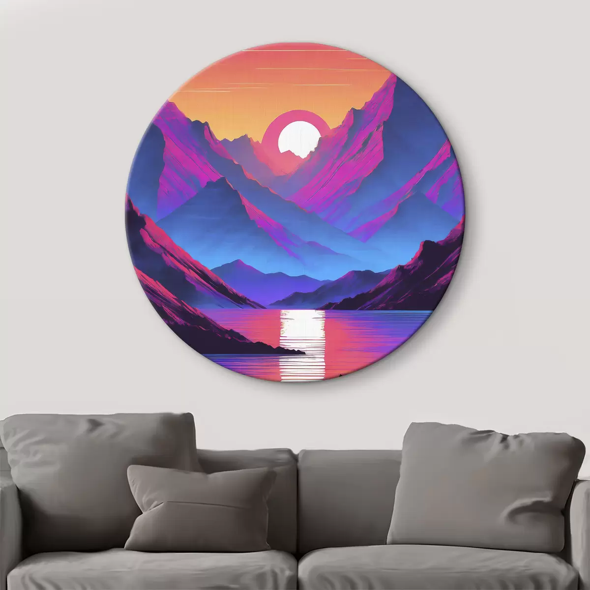 Ronde schilderijen Majestueuze bergen bij zonsondergang Nr r37999