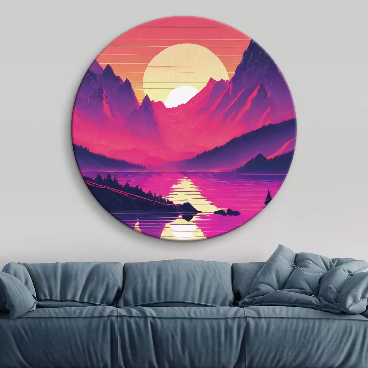 Ronde schilderijen Majestueuze bergen bij zonsondergang Nr r38001