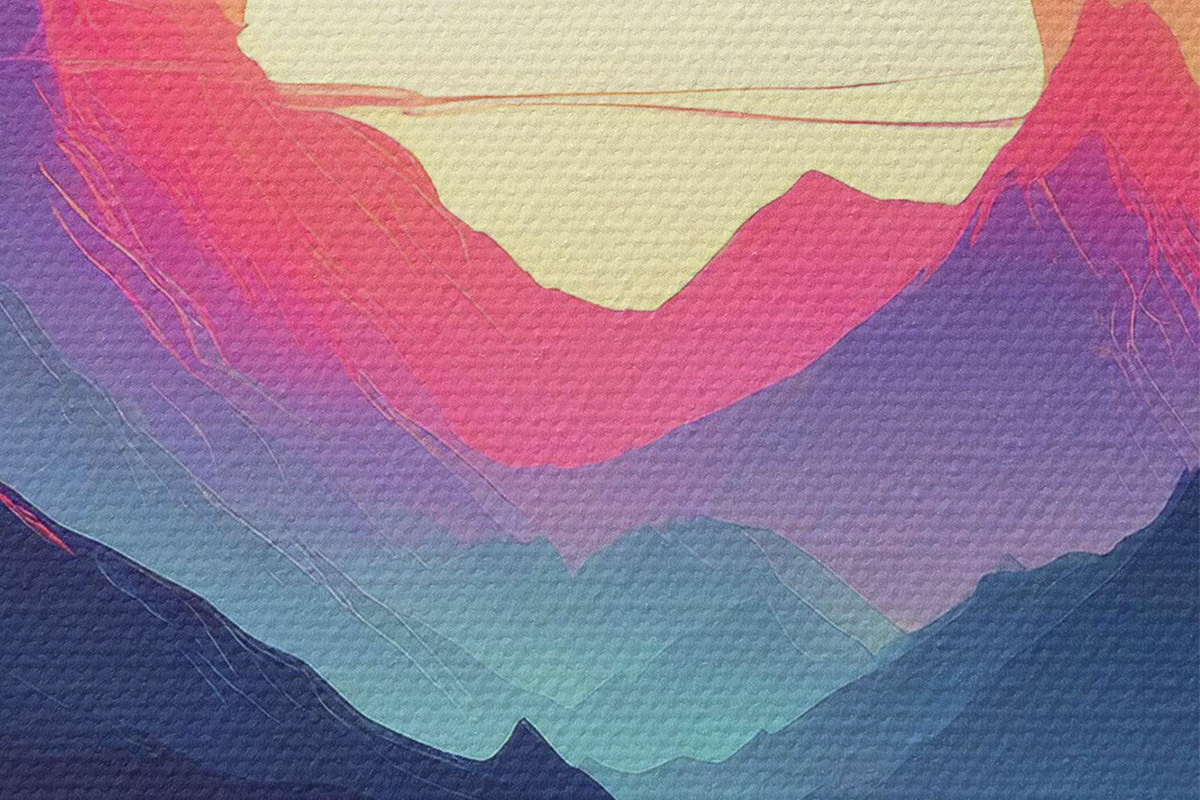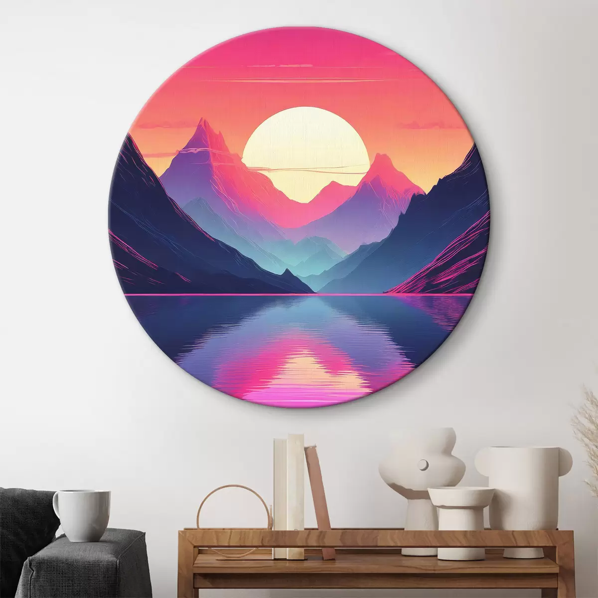 Ronde schilderijen Majestueuze bergen bij zonsondergang Nr r38002