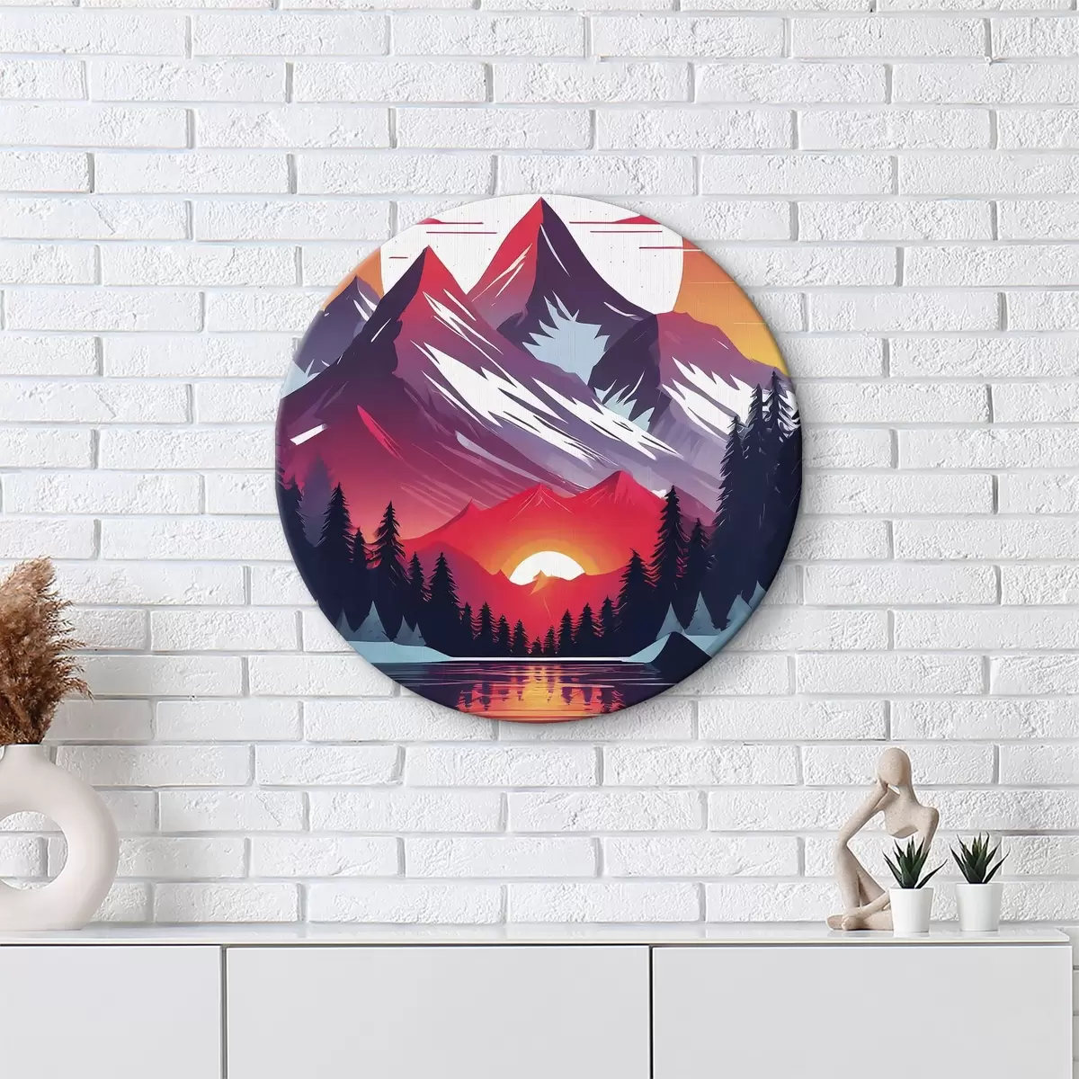 Ronde schilderijen Majestueuze bergen onder een heldere hemel Nr r38005