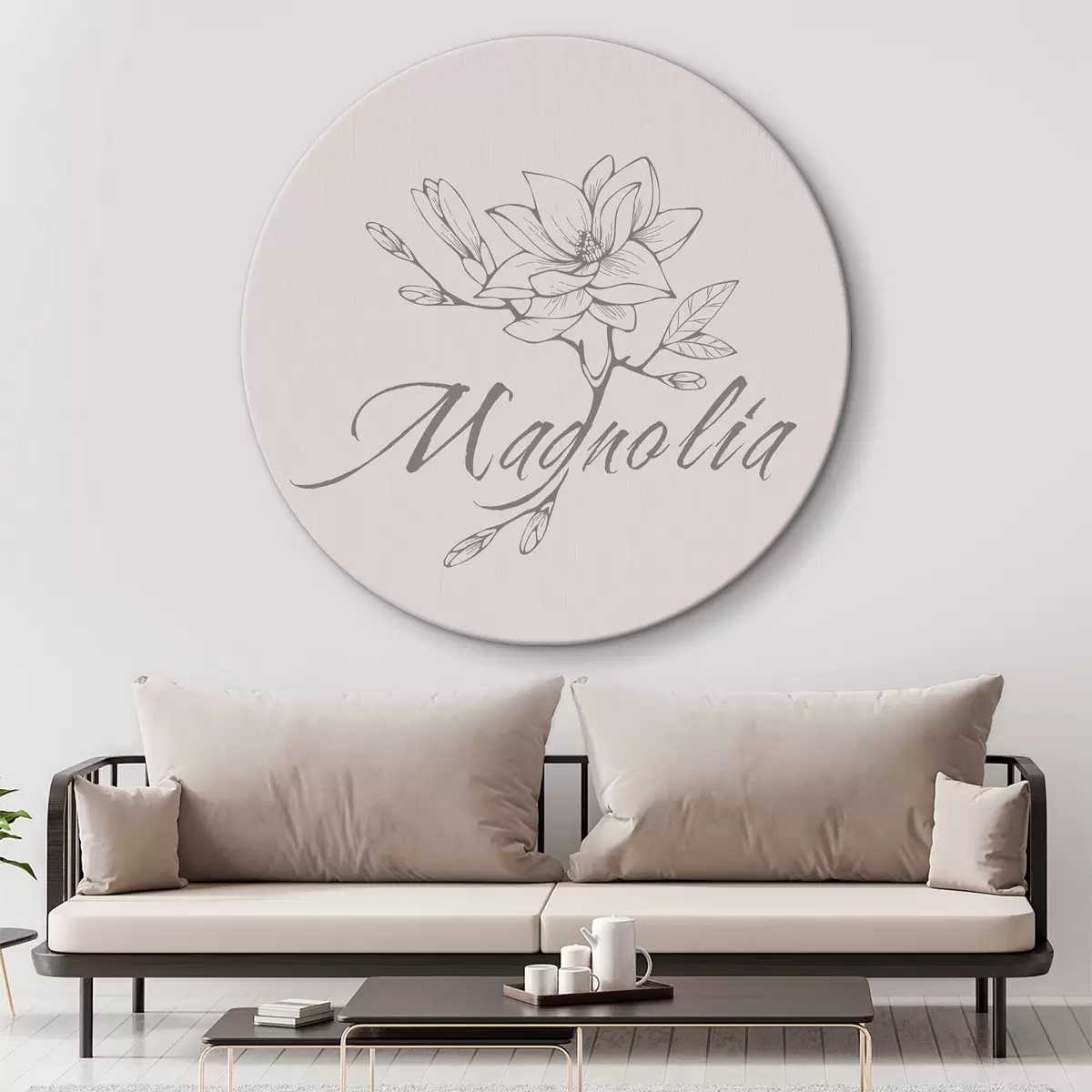Ronde schilderijen Magnolia, bloem, botanisch, elegante bladeren, pastelkleuren, minimalisme Nr r38007