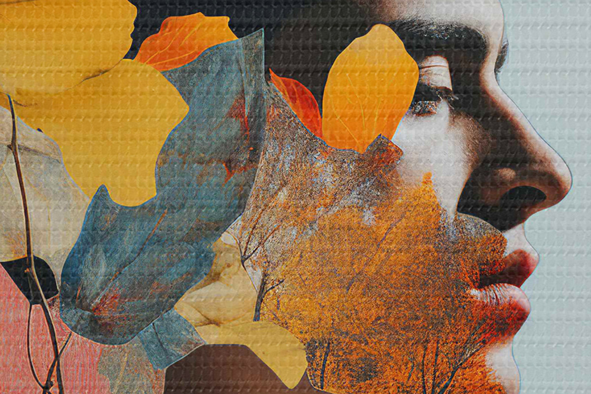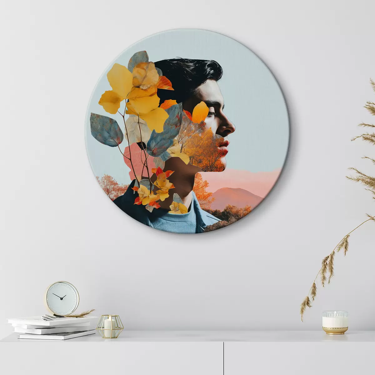 Ronde schilderijen De natuur is verweven met het menselijke gezicht r38042