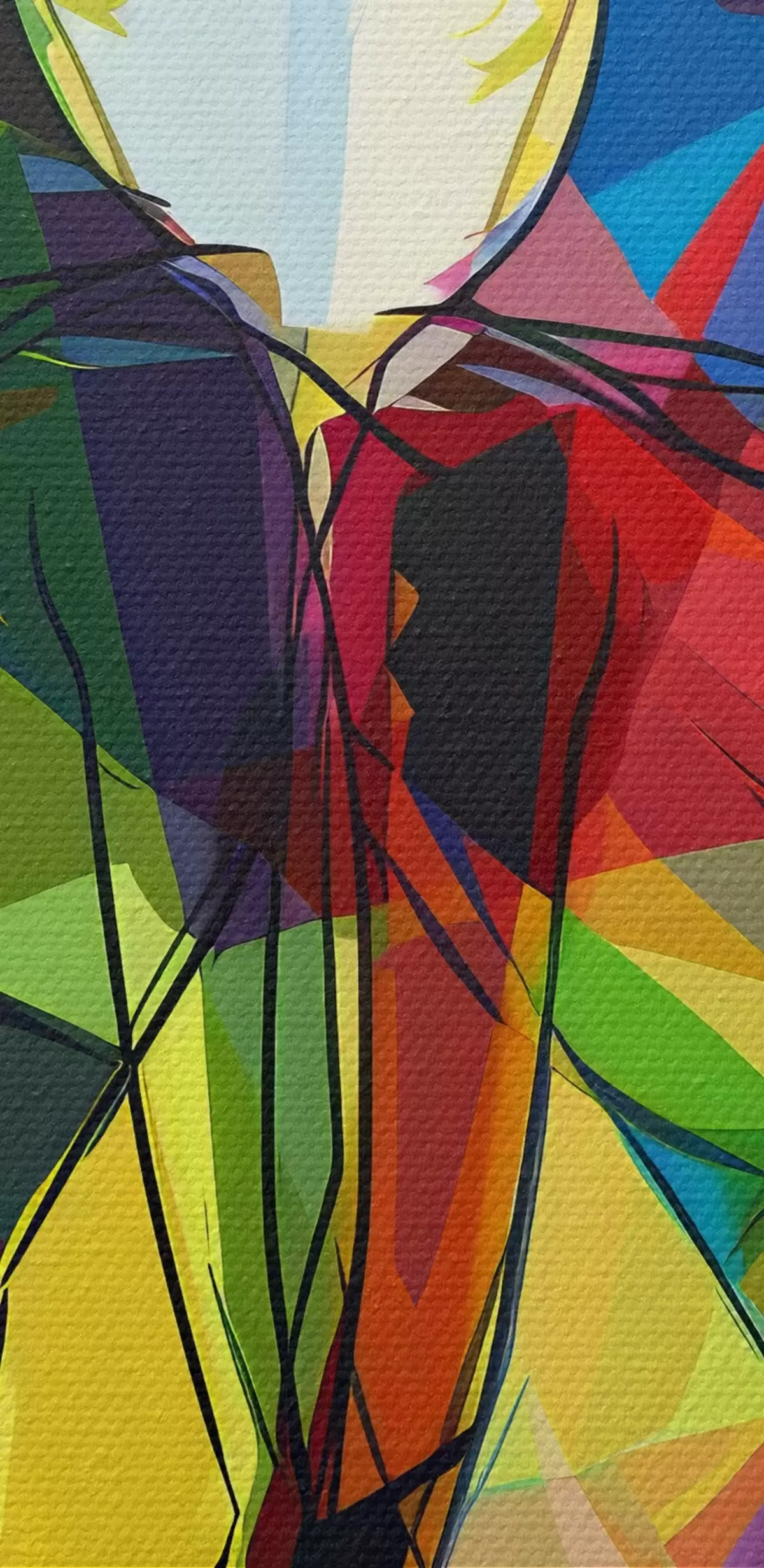 Het schilderij kan direct na ontvangst worden opgehangen. Het schilderij wordt opgespannen op een 2 cm breed houten spieraam.