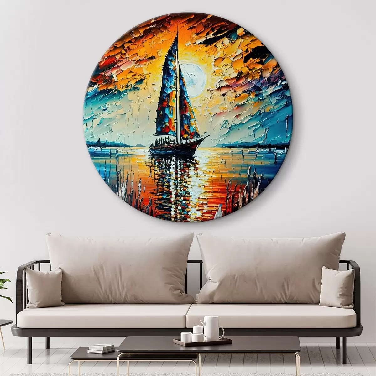 Ronde schilderijen Zeil de heldere zonsondergang tegemoet Nr r38052