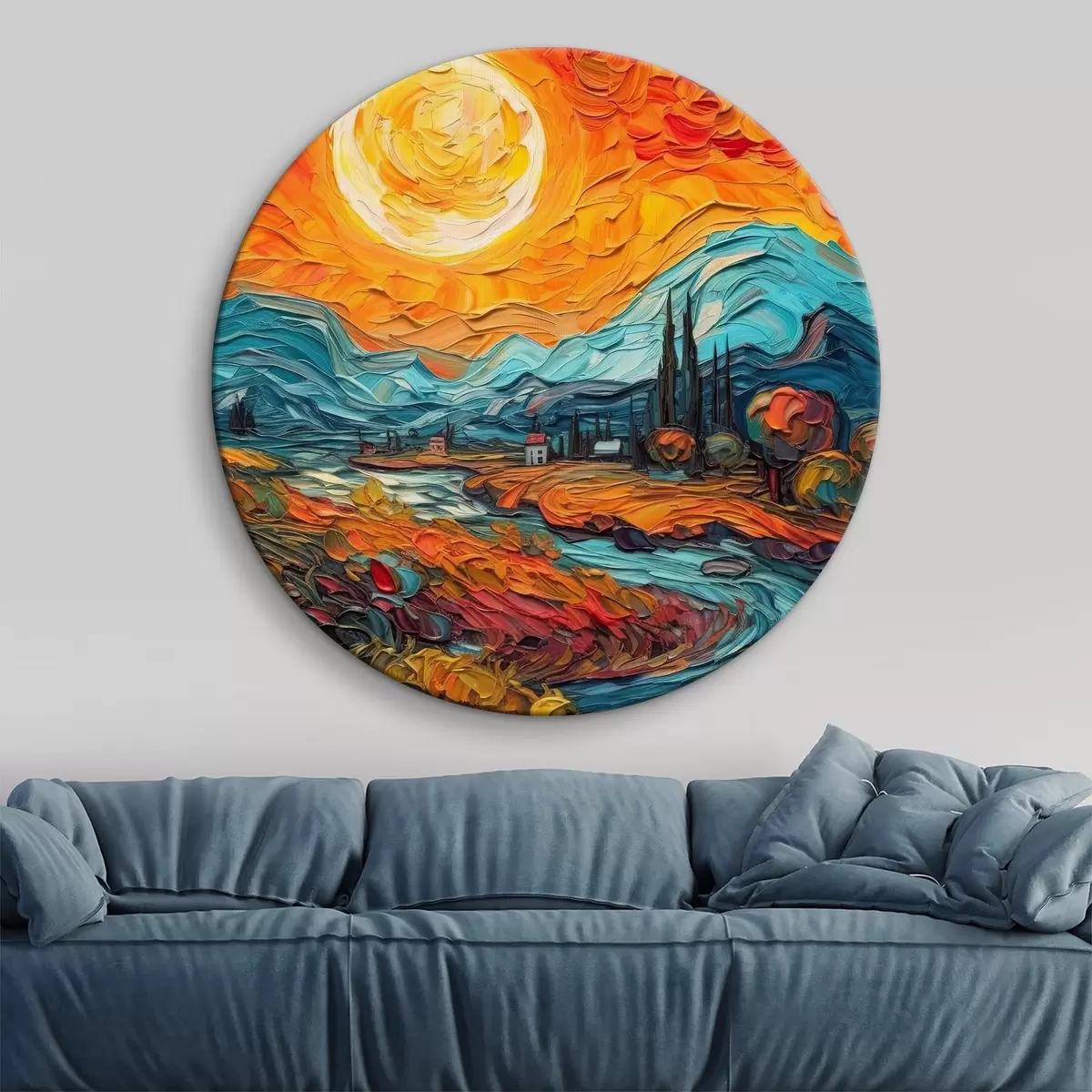 Ronde schilderijen Heldere zonsondergang Nr r38057