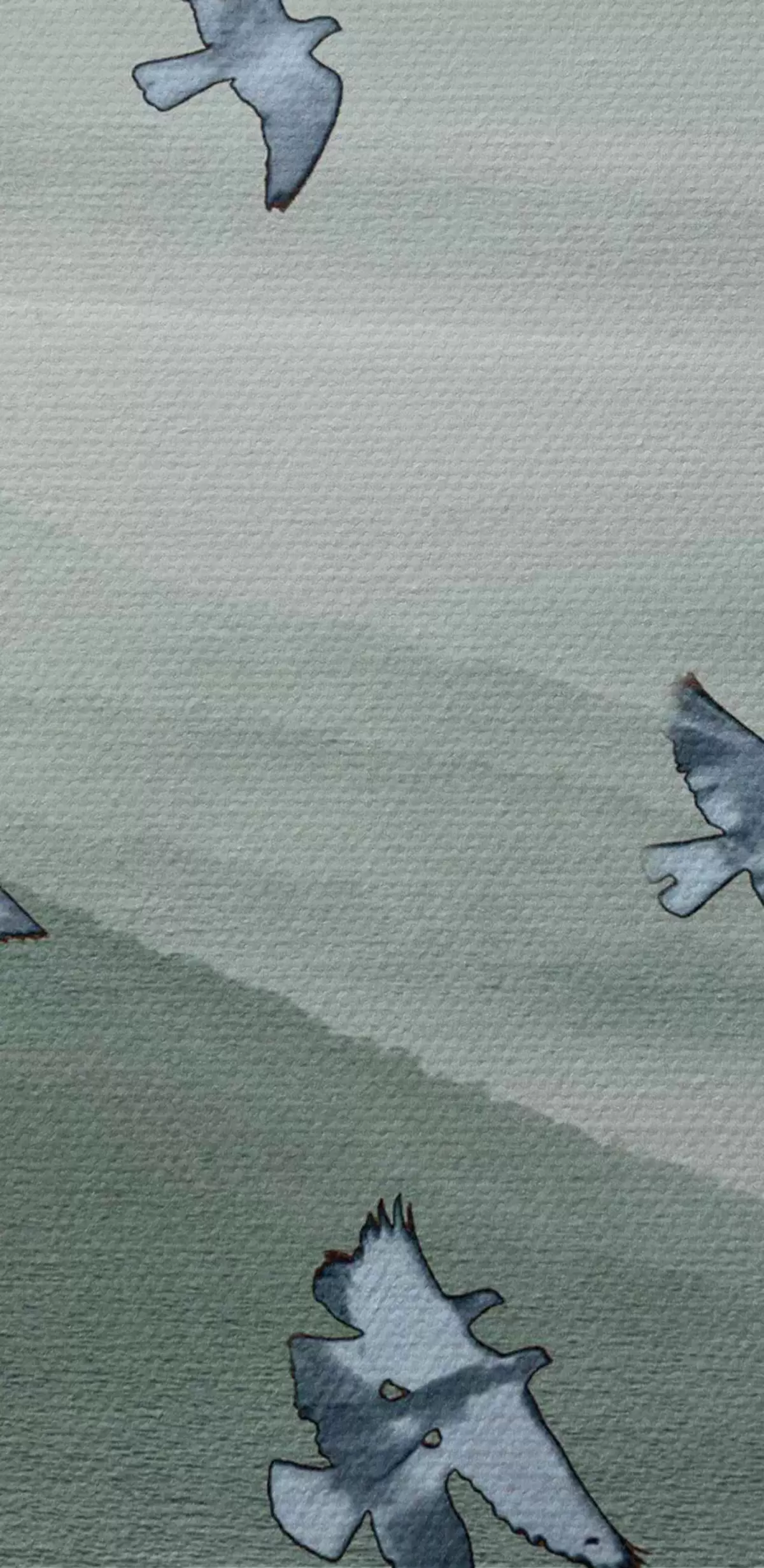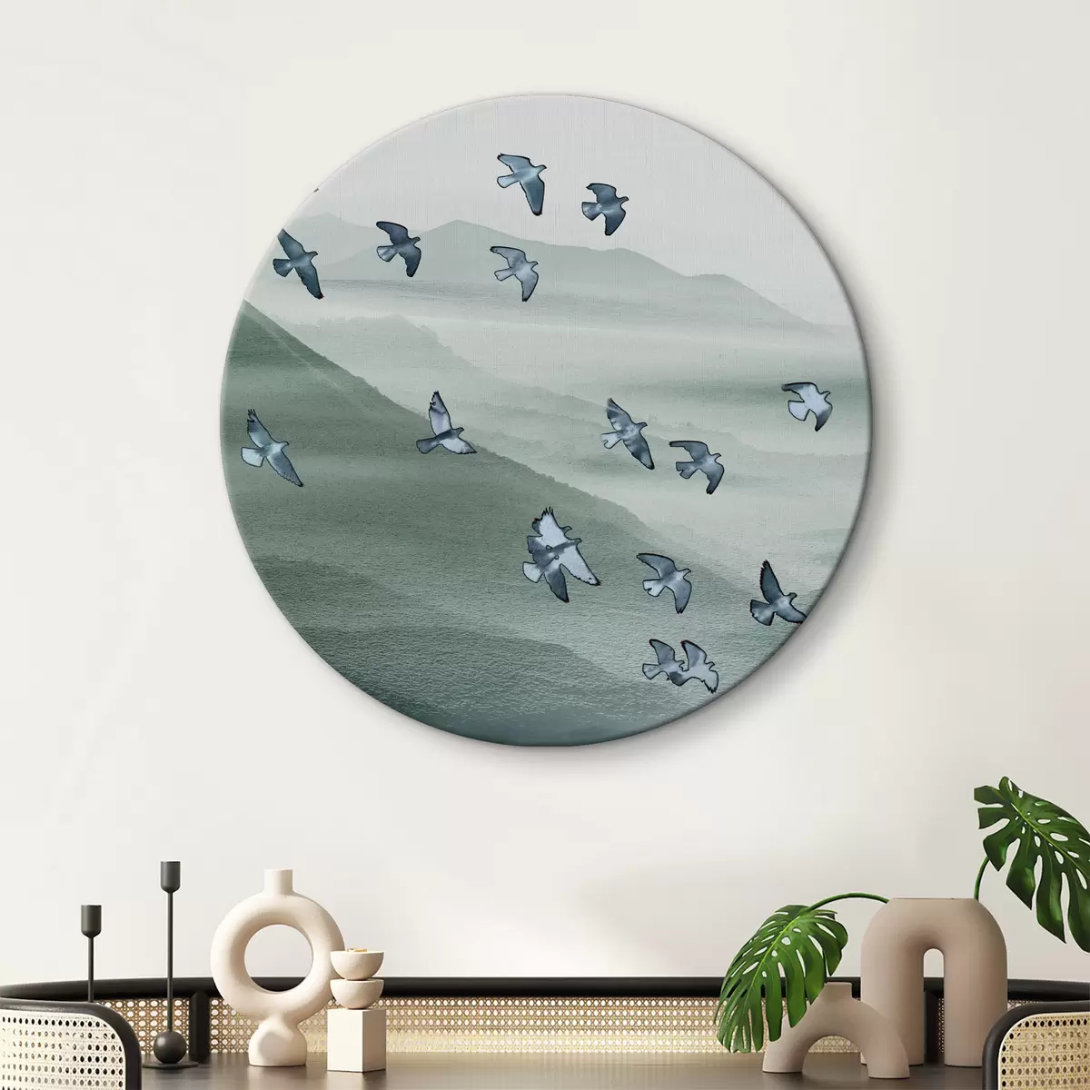 Ronde schilderijen Een zwerm vogels vliegt over de bergen Nr r38069