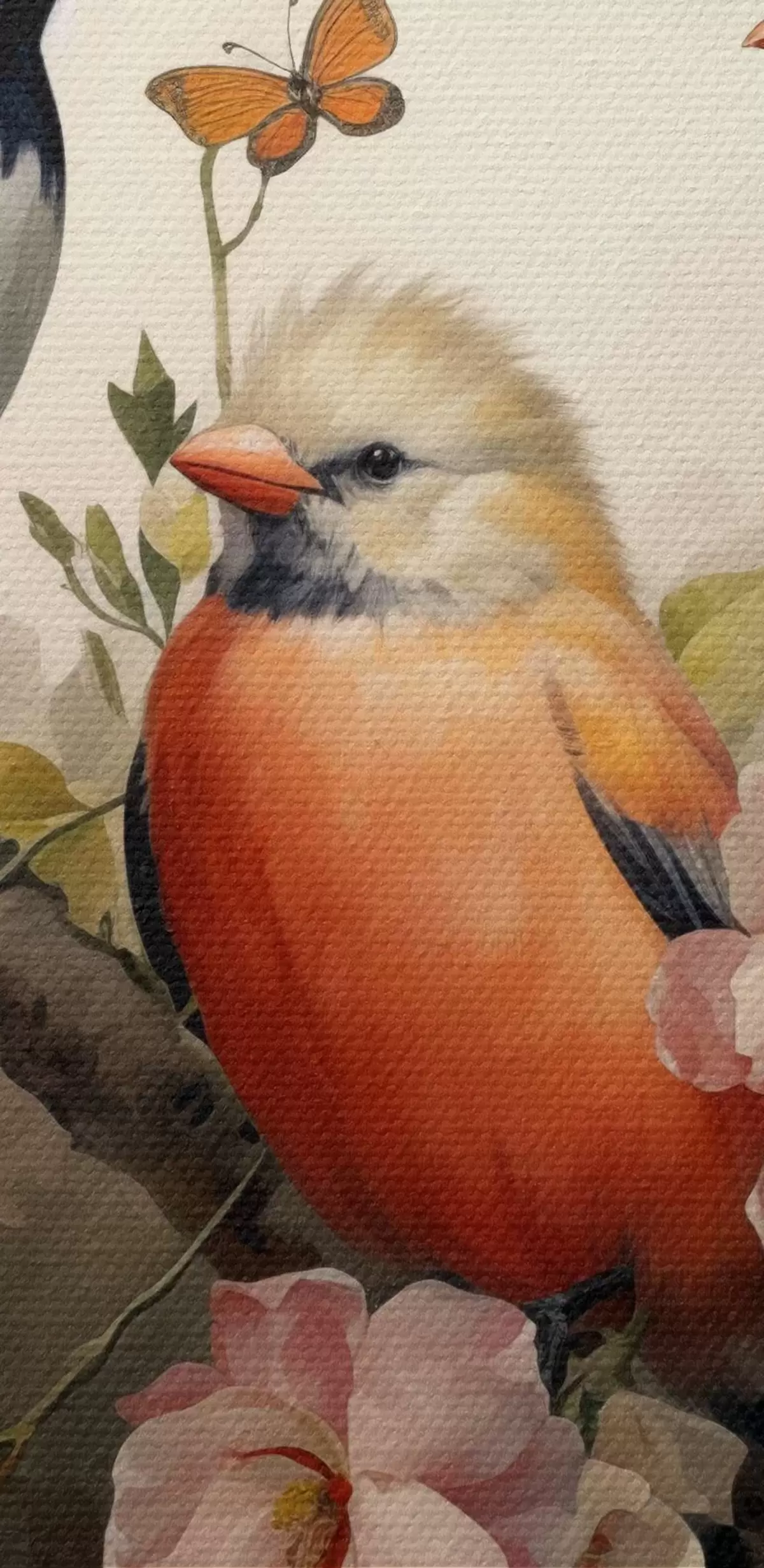 Ronde schilderijen Een groep vogels op een tak met bloemen Nr r38103