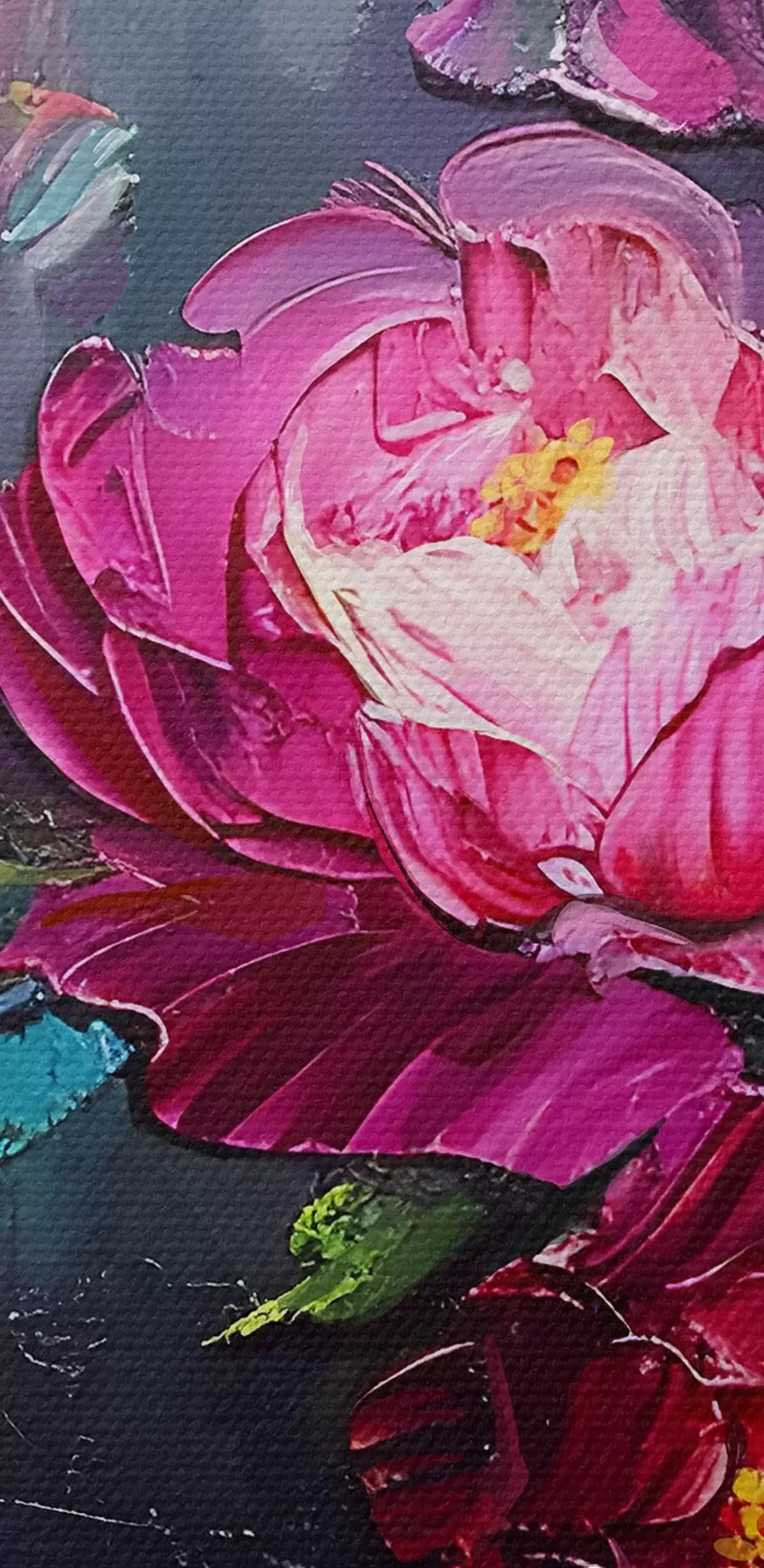 Het schilderij kan direct na ontvangst worden opgehangen. Het schilderij wordt opgespannen op een 2 cm breed houten spieraam.