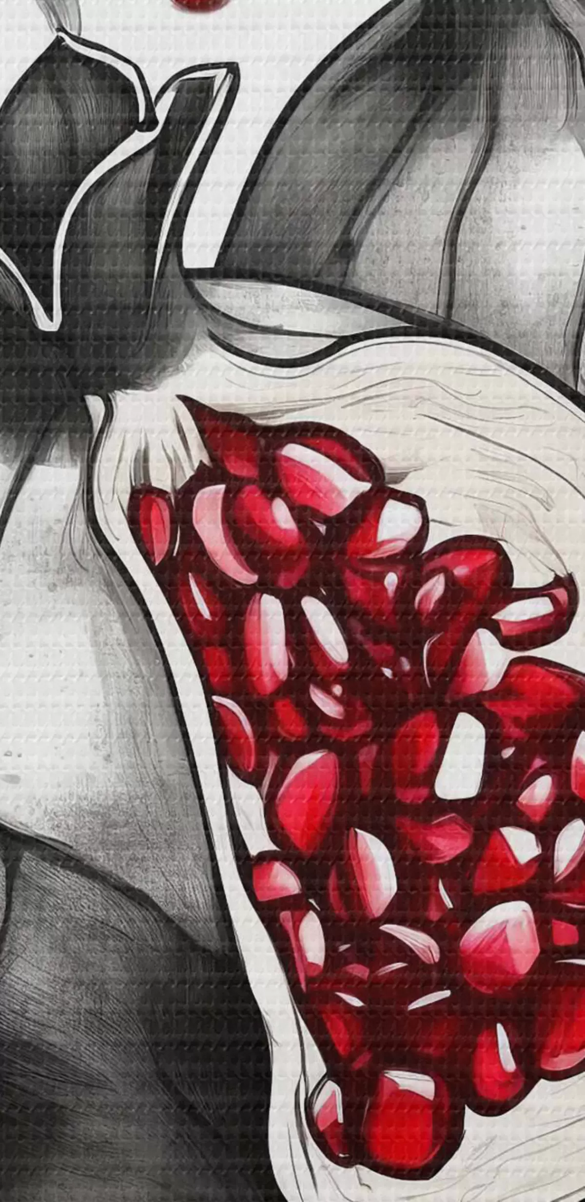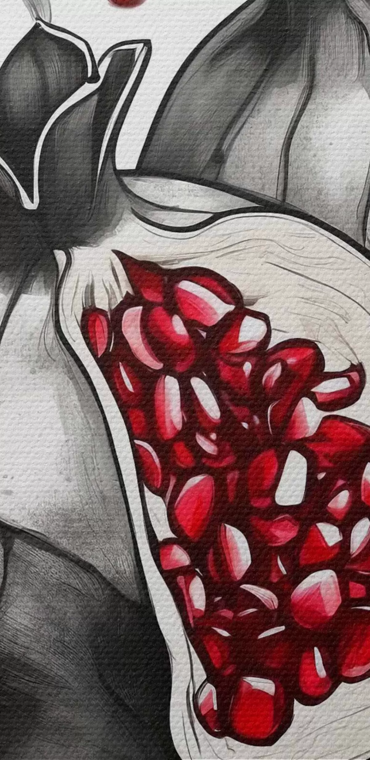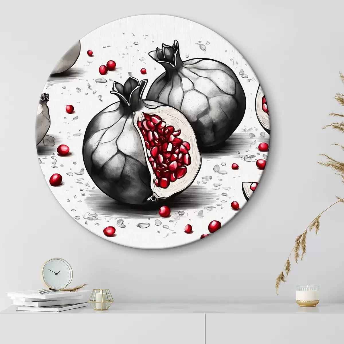 Ronde schilderijen Een doormidden gesneden granaatappel Nr r38119