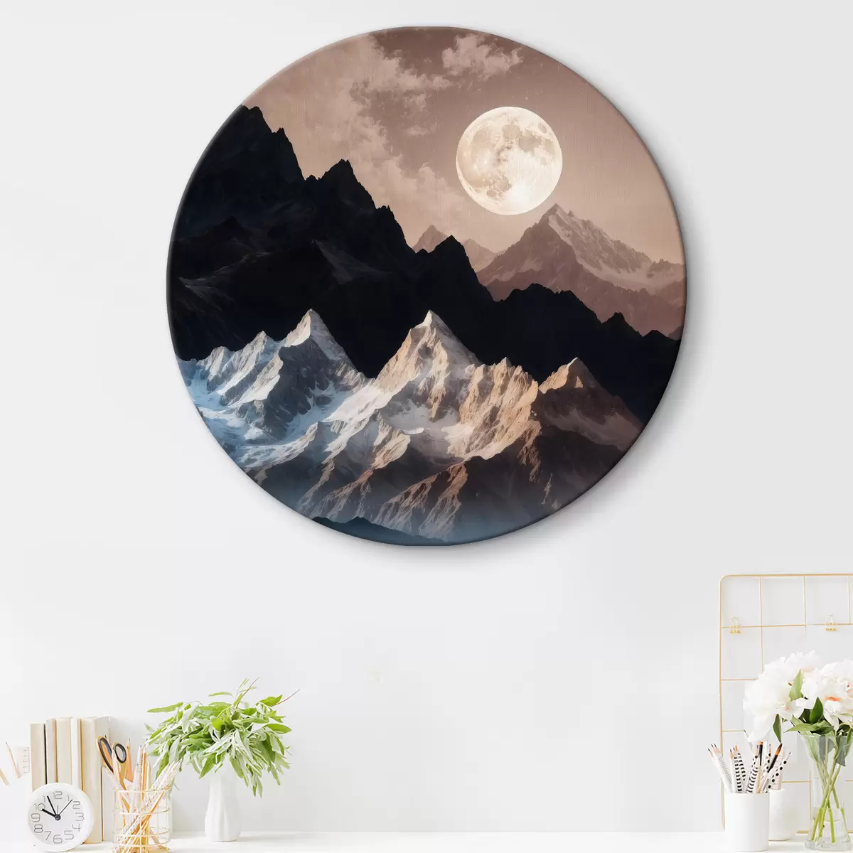 Ronde schilderijen Maan boven bergen en wolken Nr r38122