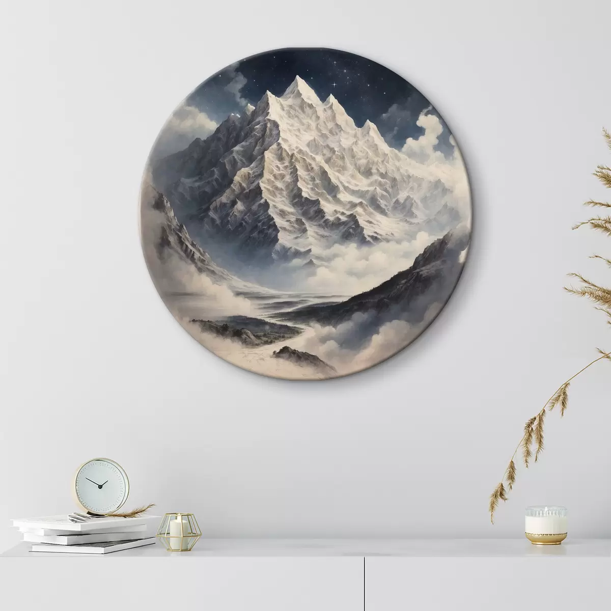 Ronde schilderijen Berg met wolken en sterren Nr r38127