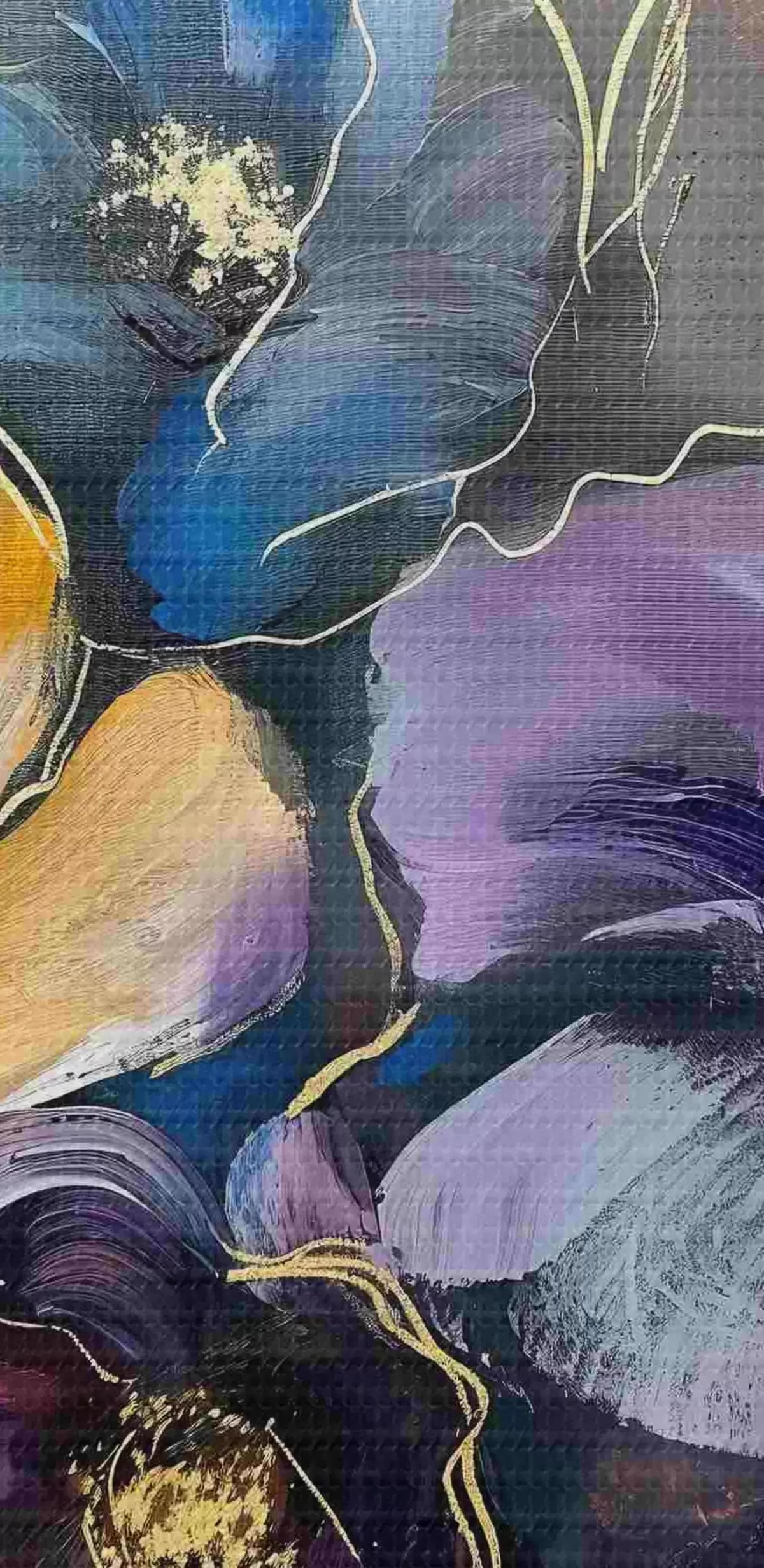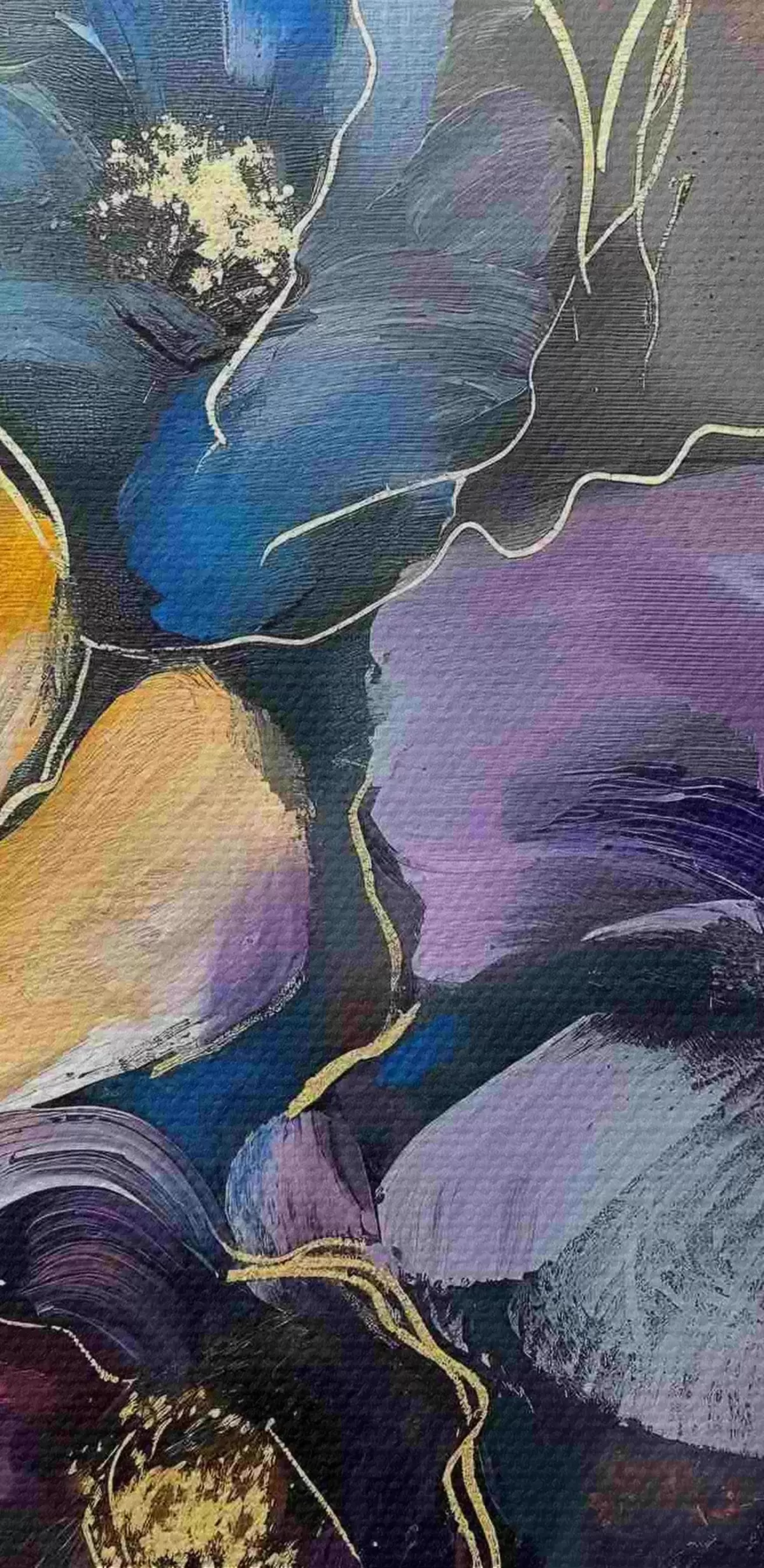 Het schilderij kan direct na ontvangst worden opgehangen. Het schilderij wordt opgespannen op een 2 cm breed houten spieraam.