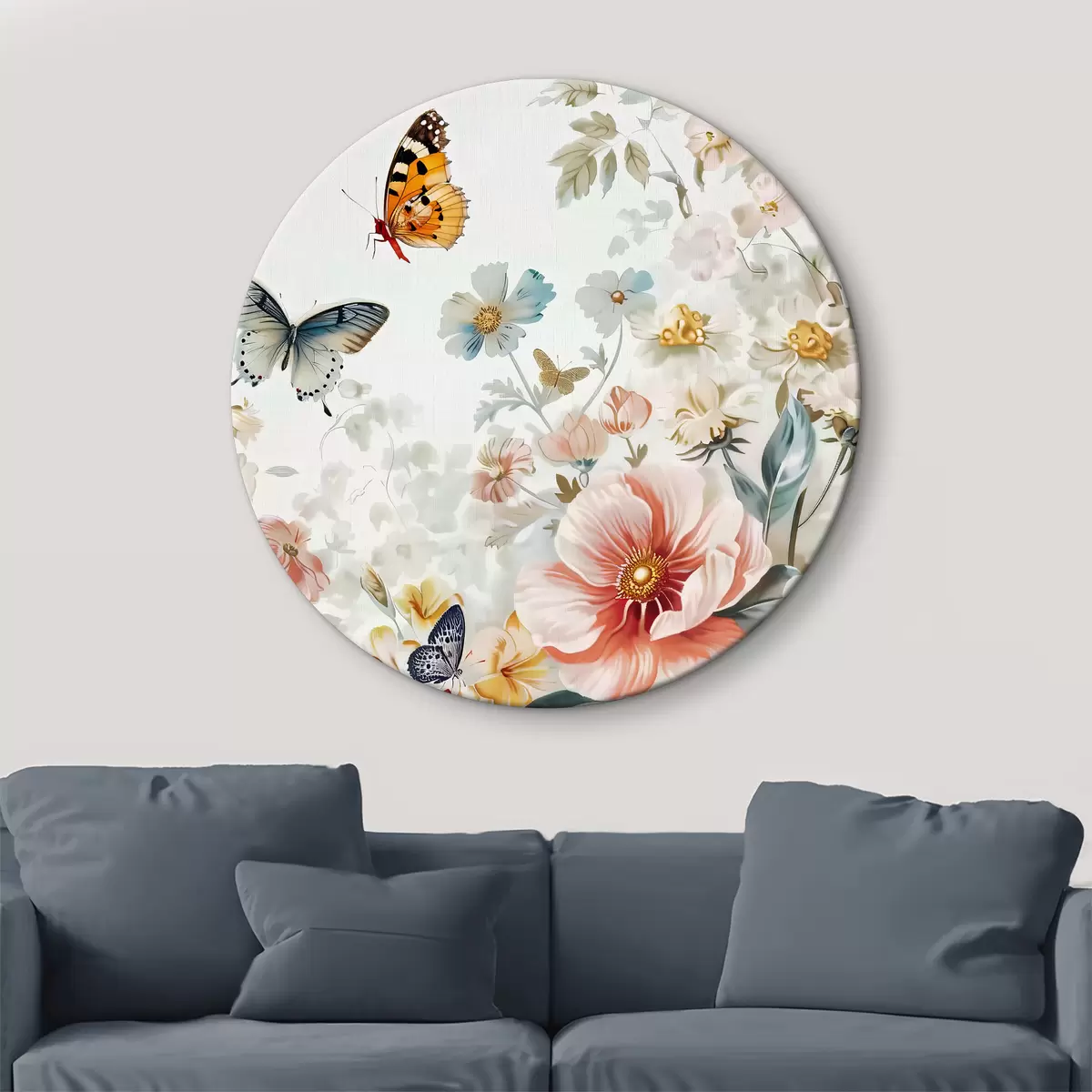 Ronde schilderijen Bloemen en vlinders r38152