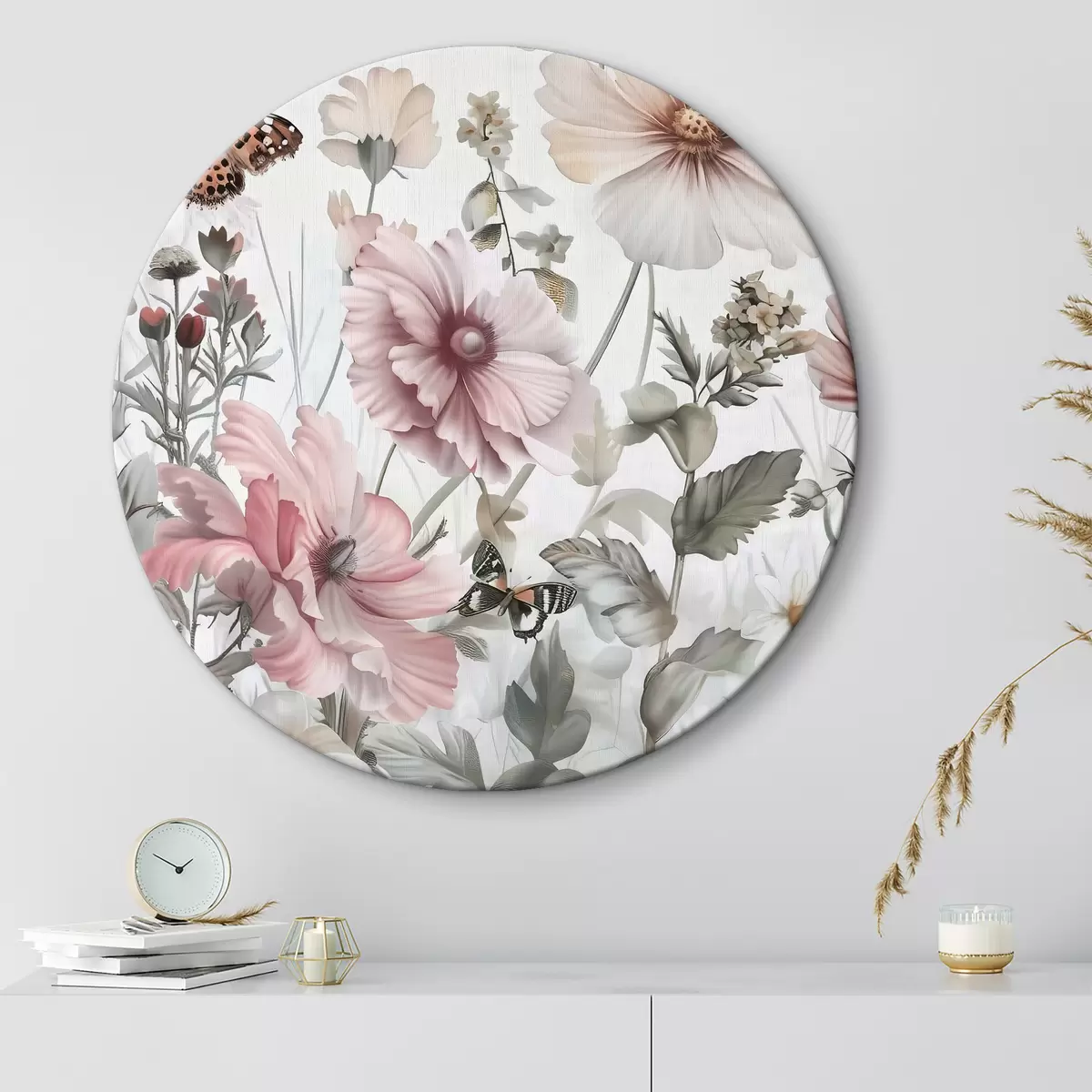 Ronde schilderijen Close-up van bloemen en vlinders r38153