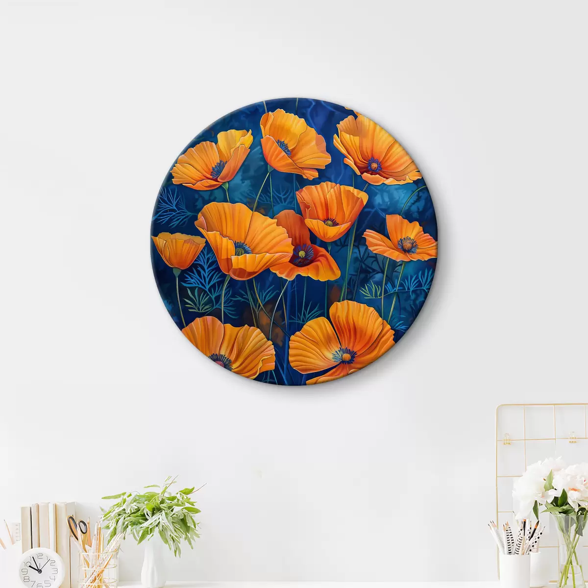 Ronde schilderijen Groep oranje bloemen r38160