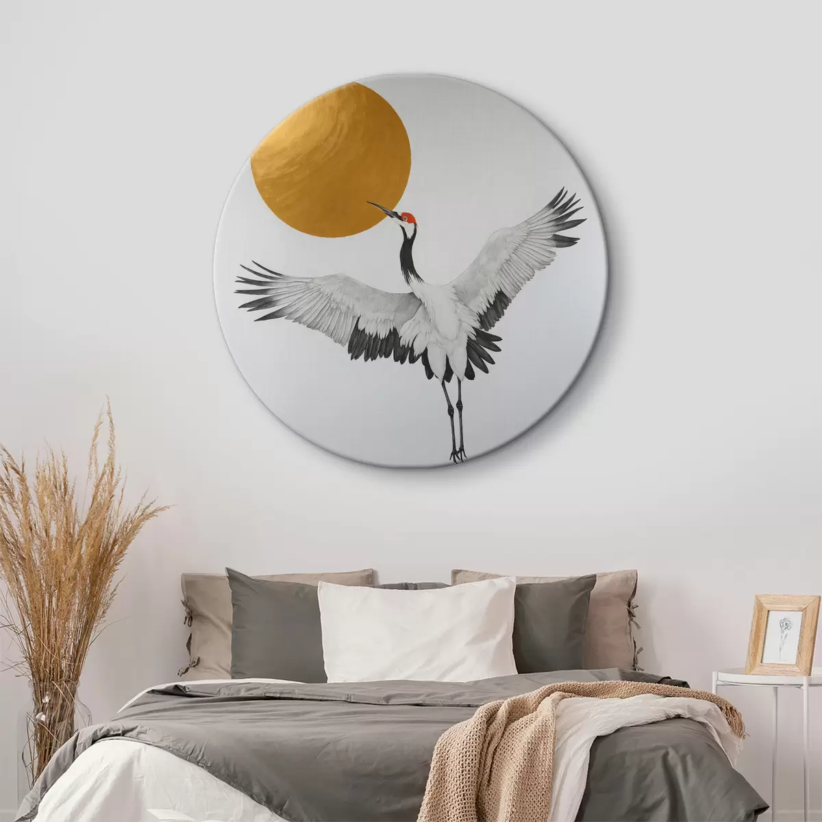 Ronde schilderijen Kraan vliegt naar de zon Nr r38195