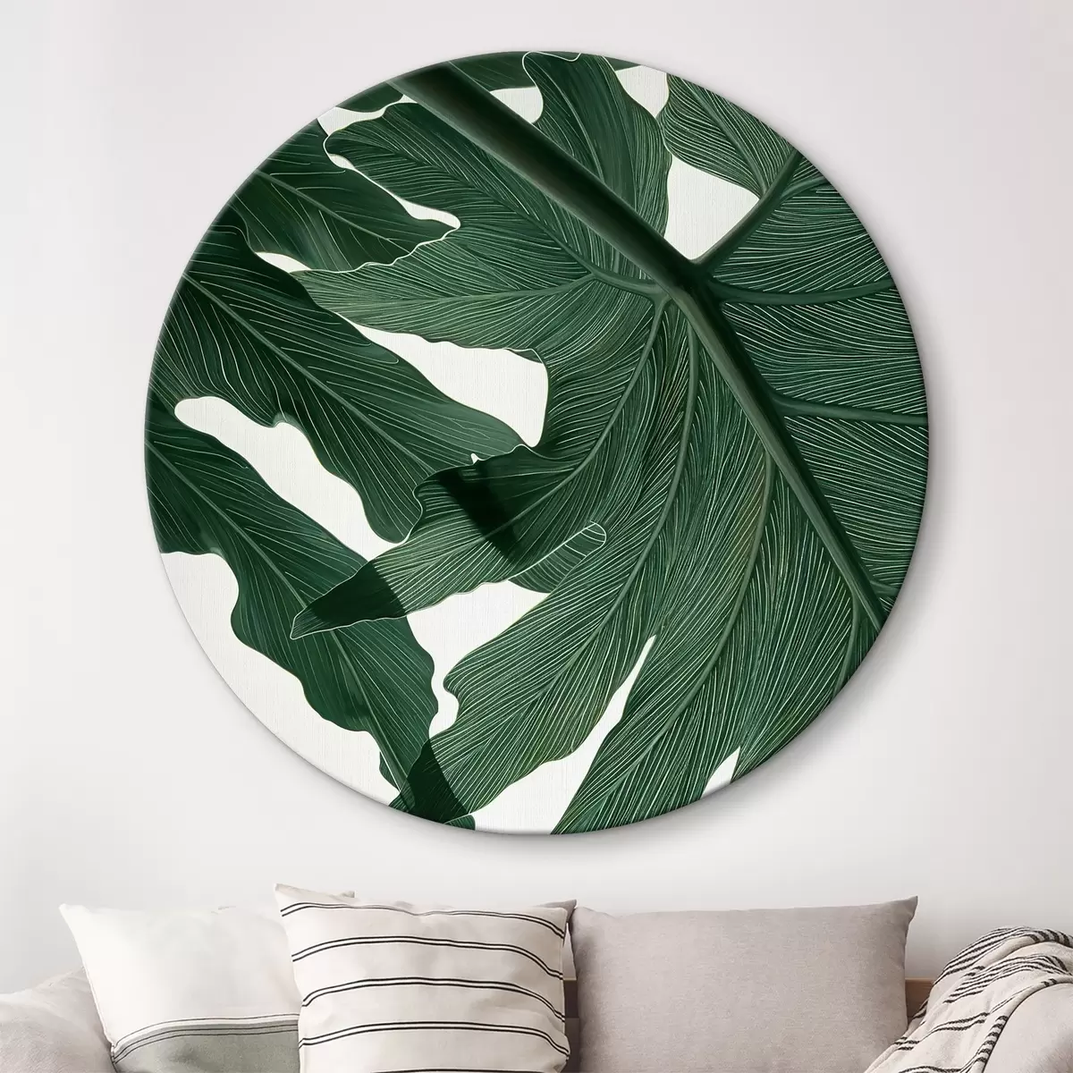 Ronde schilderijen Grote varenbladeren op witte achtergrond in moderne stijl Nr r38203