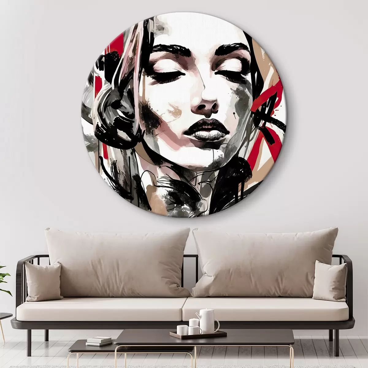 Ronde schilderijen Portret van een meisje met penseelstreken r38224
