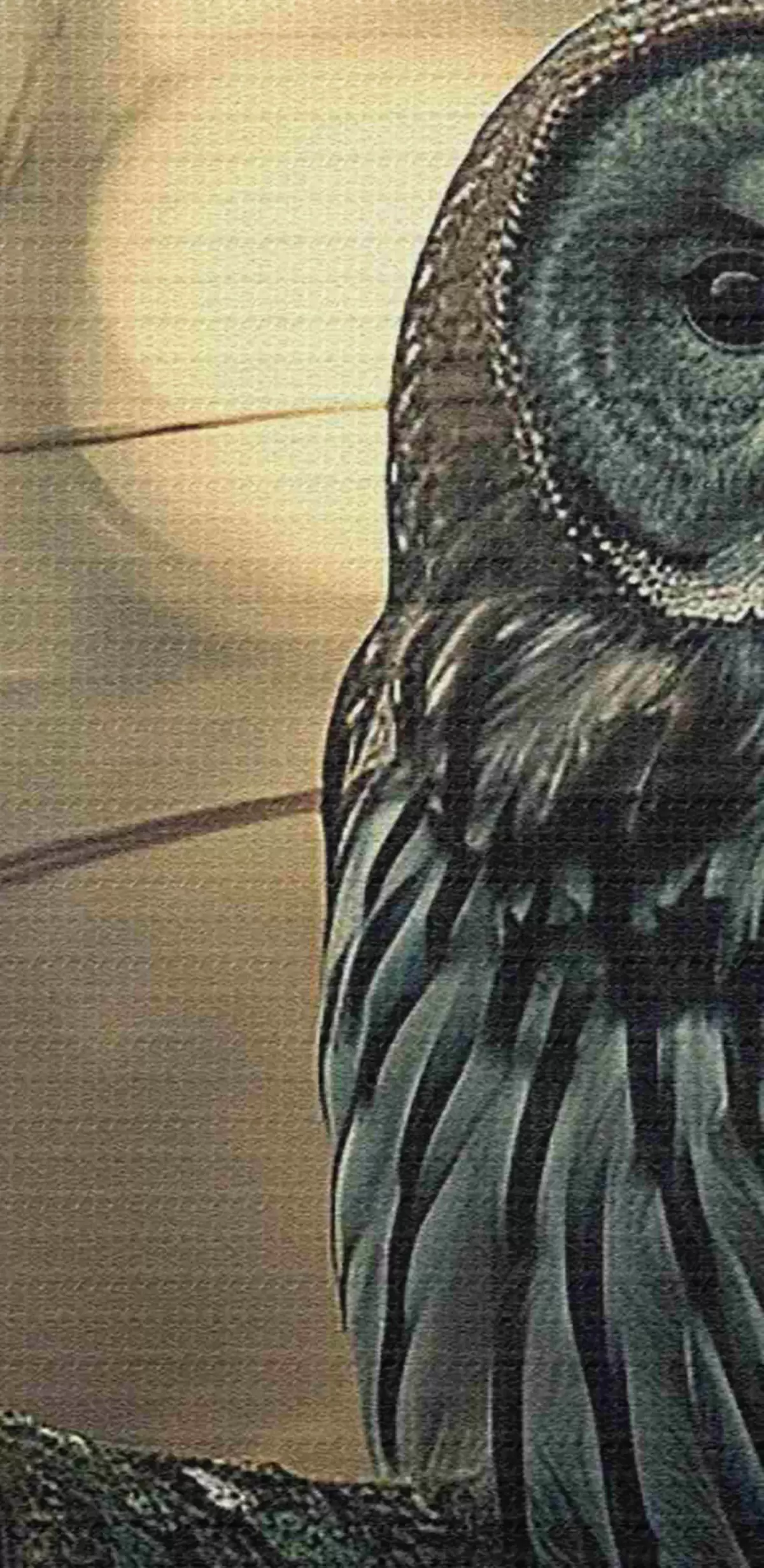 Ronde schilderijen Een uil zittend op een tak Nr r38248