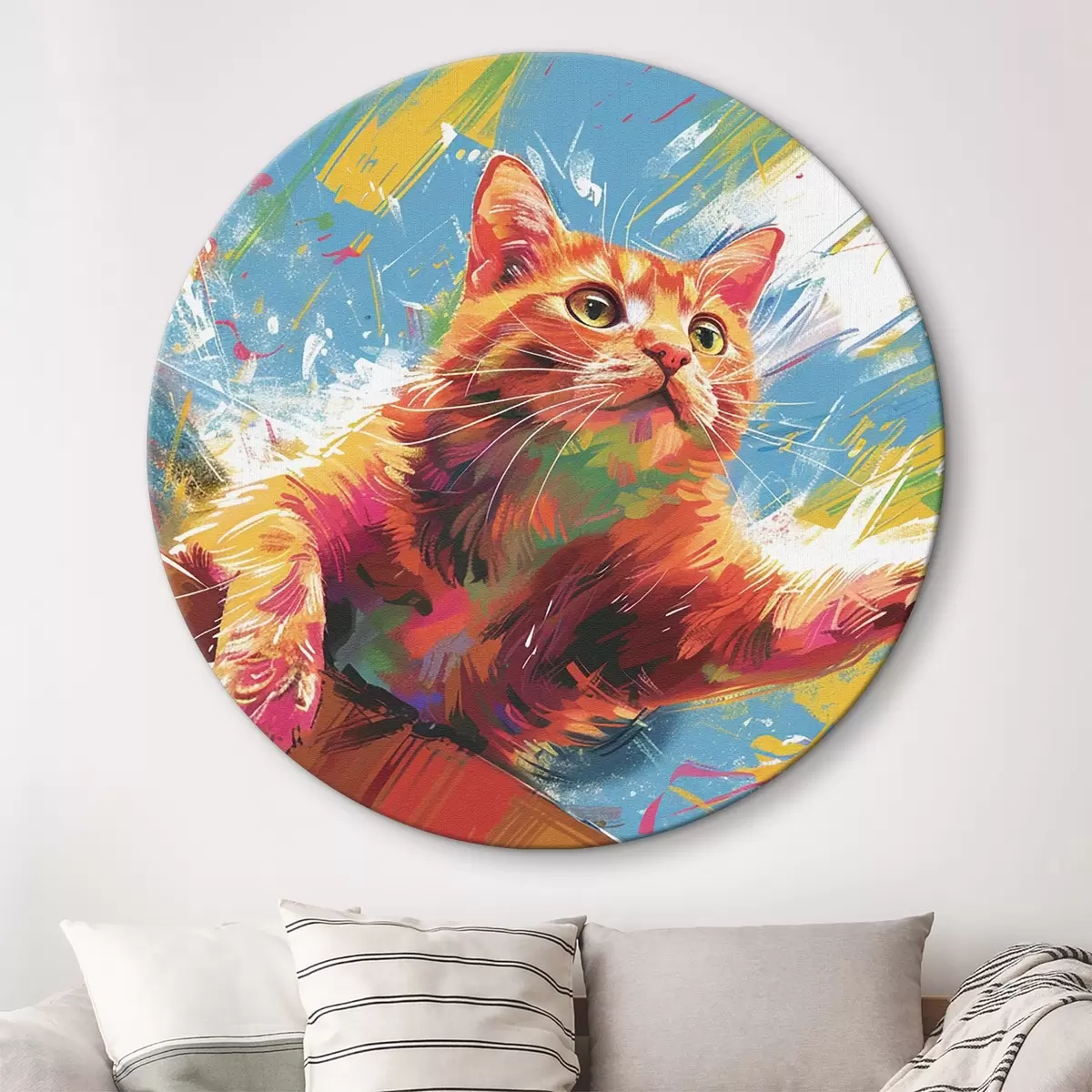 Ronde schilderijen Kat steekt poot uit Nr r38251