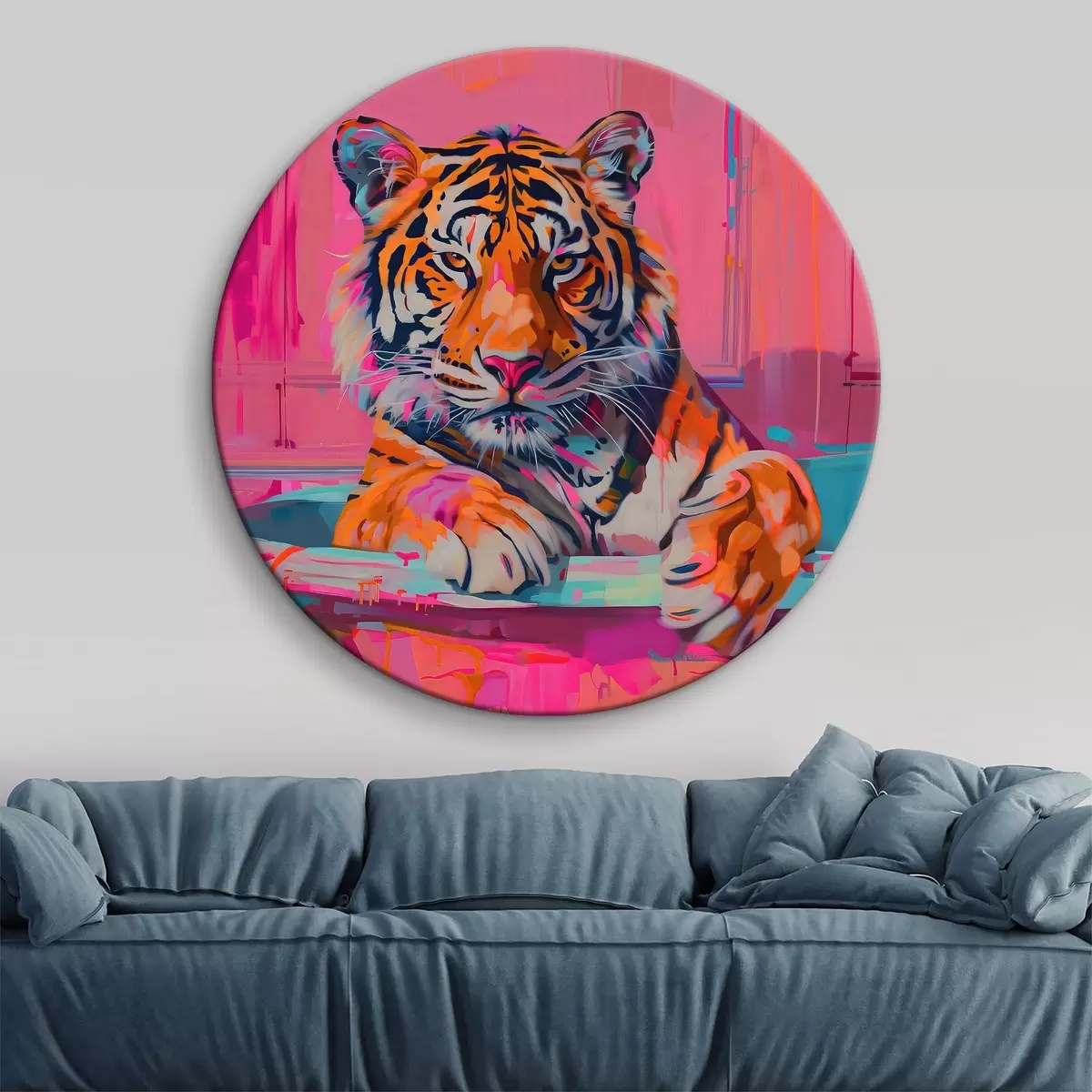 Ronde schilderijen Tijger in bad Nr r38257