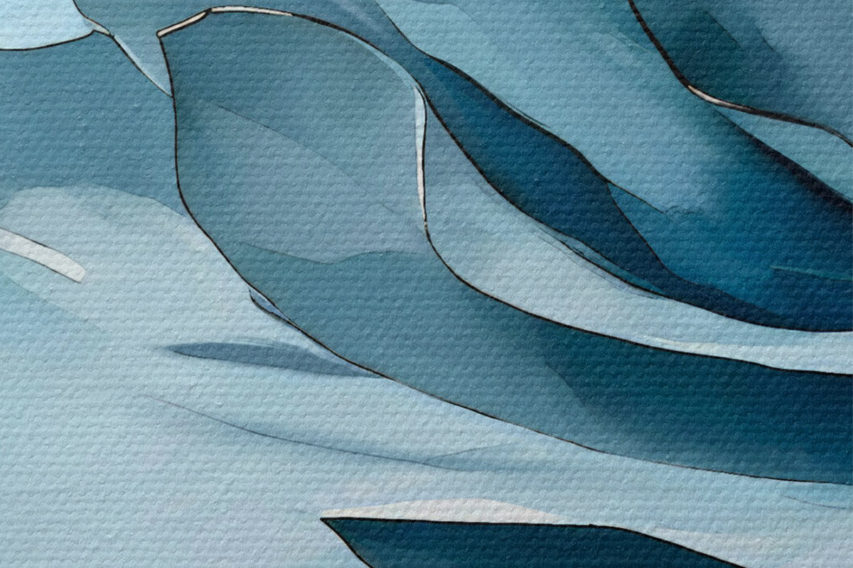 Ronde schilderijen Close-up van een blauw blad Nr r38268