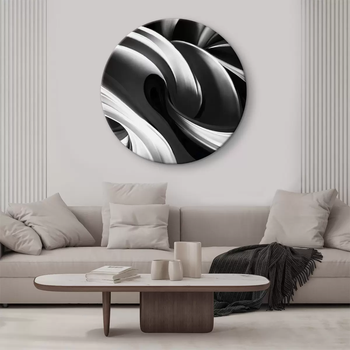 Ronde schilderijen Wervelende zwarte en witte achtergrond r38270