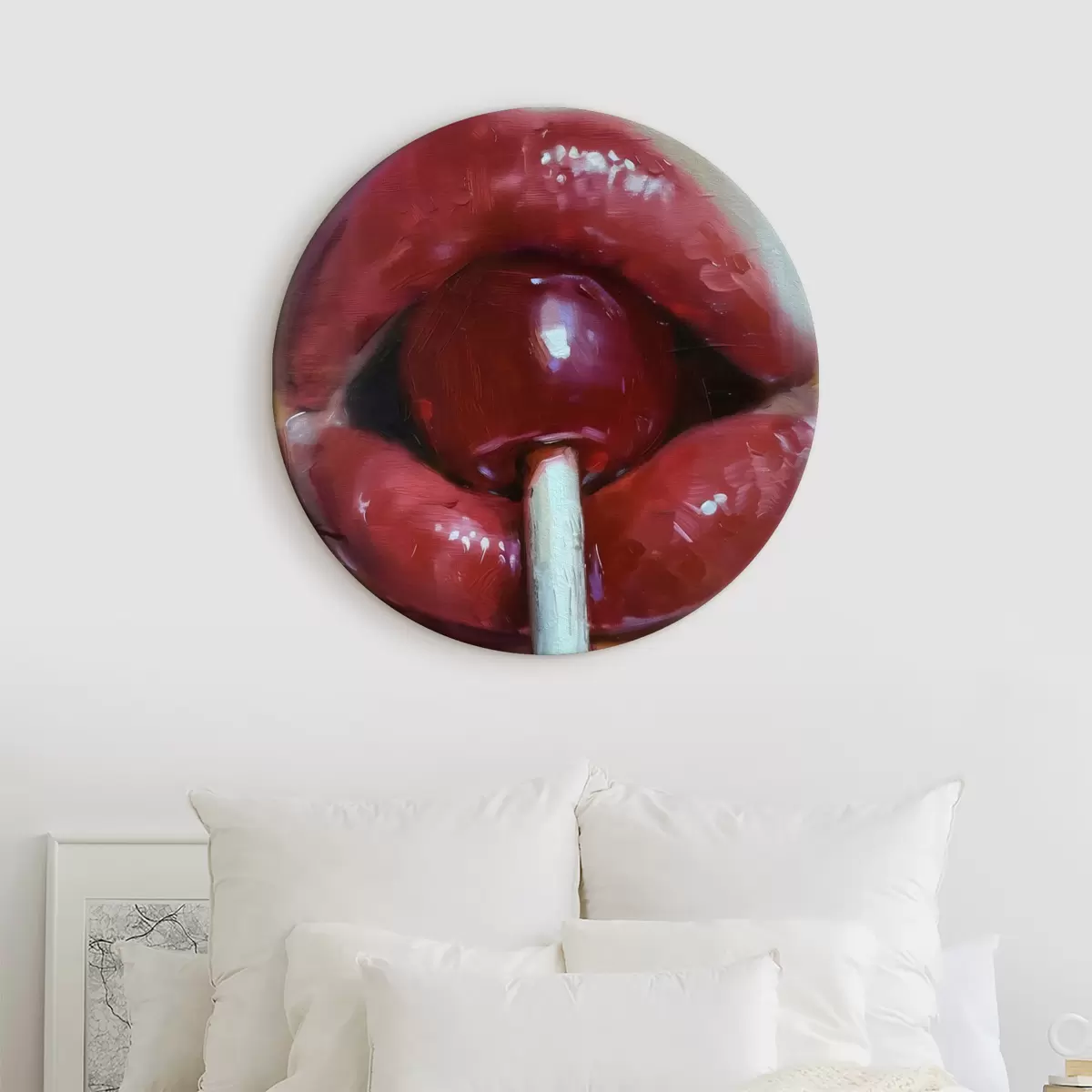 Ronde schilderijen Close-up van mond met lolly. Nr r38293