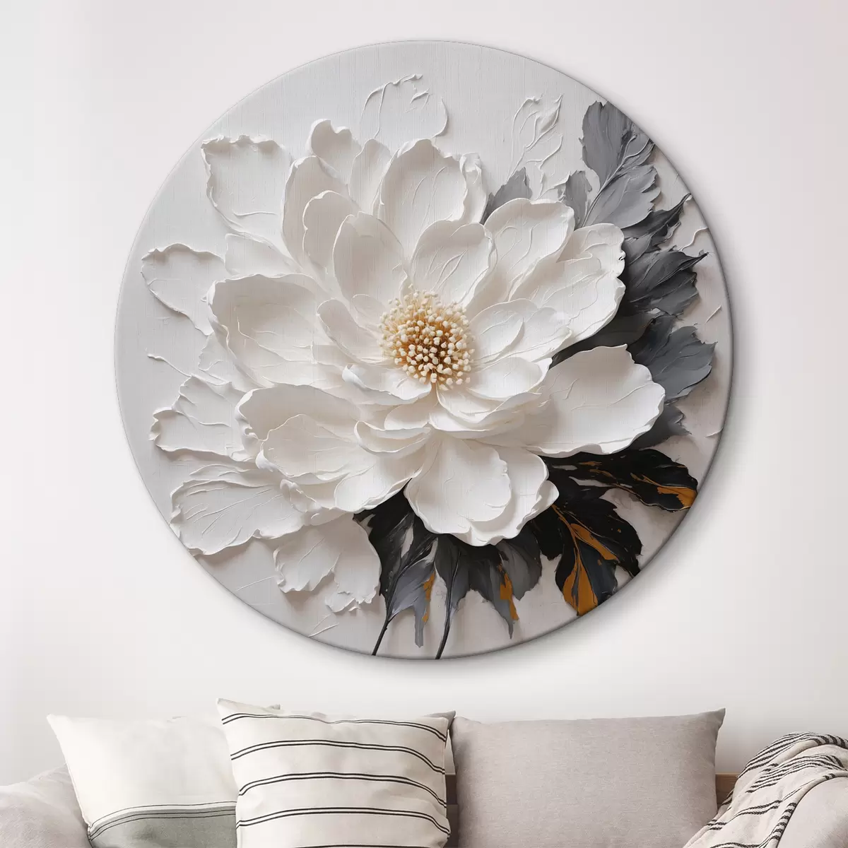 Ronde schilderijen Grote volumineuze witte bloem Nr r38304