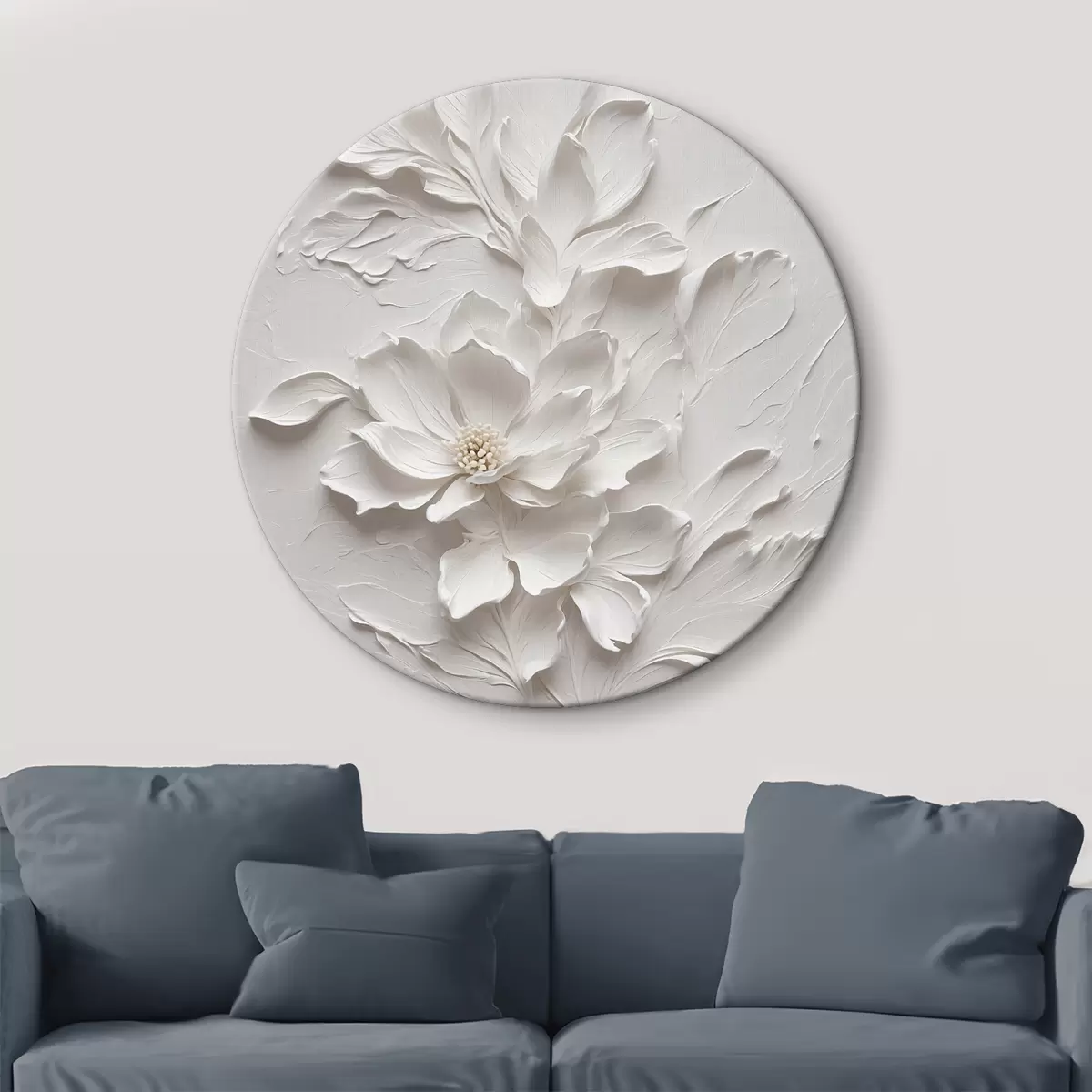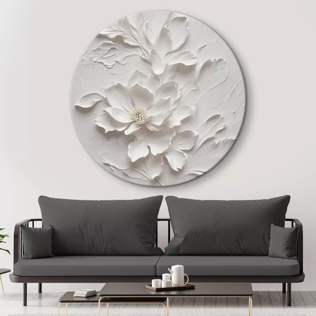 Ronde schilderijen Witte bloem op witte achtergrond in olie Nr r38305