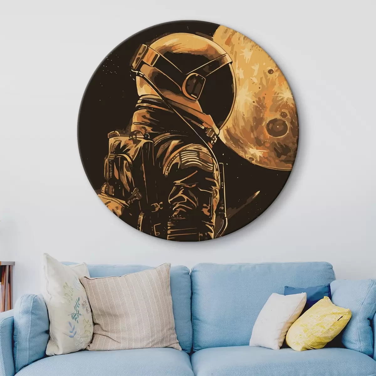 Ronde schilderijen Astronaut kijkt naar de planeet Nr r38314