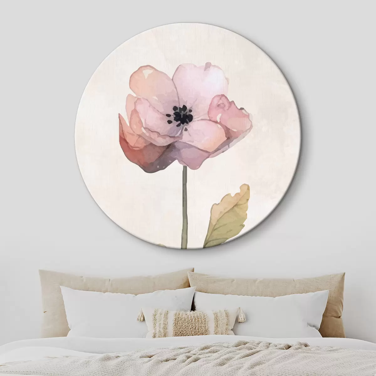 Ronde schilderijen grote roze bloem, aquarel, pastel Nr r38327
