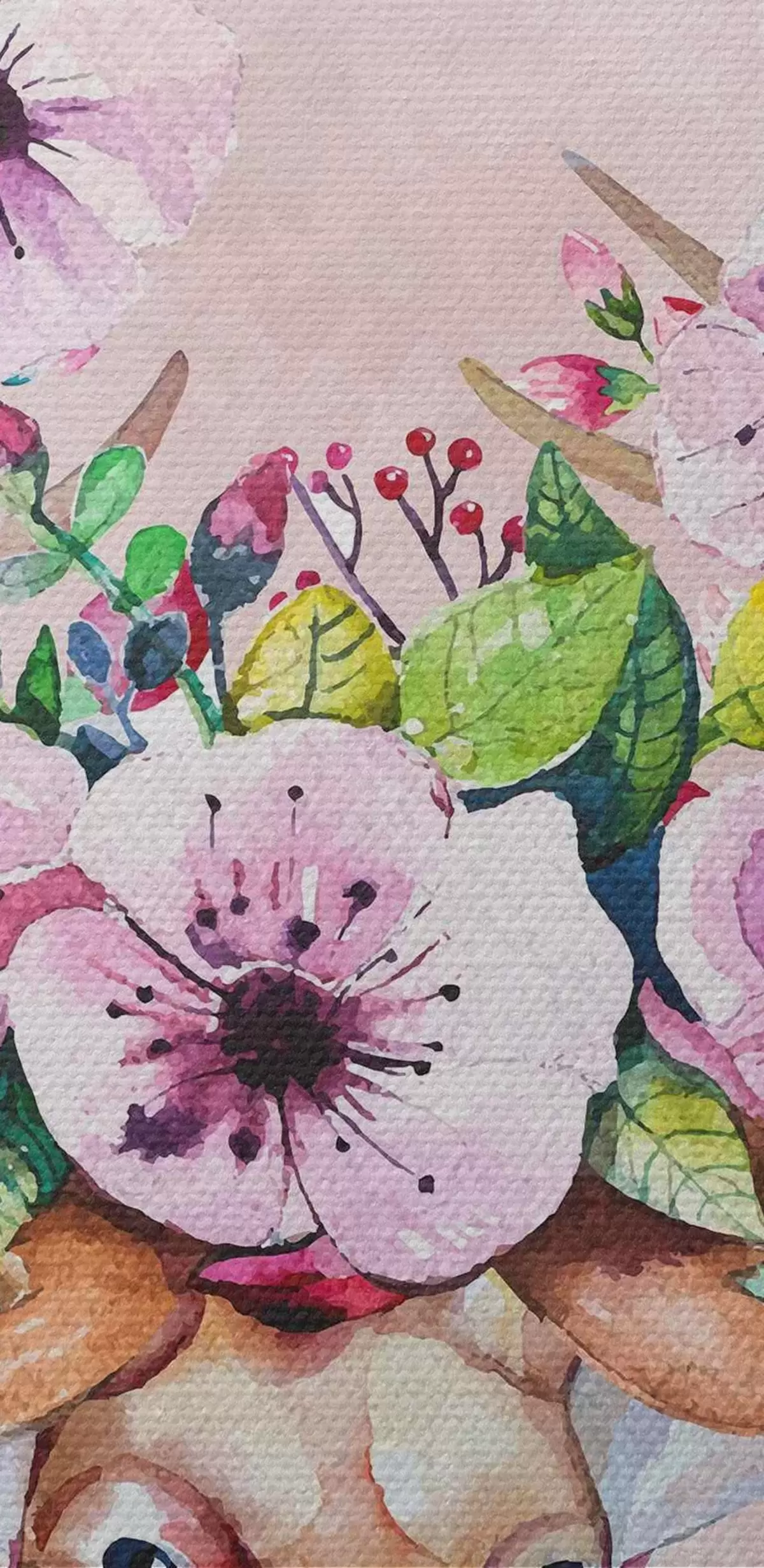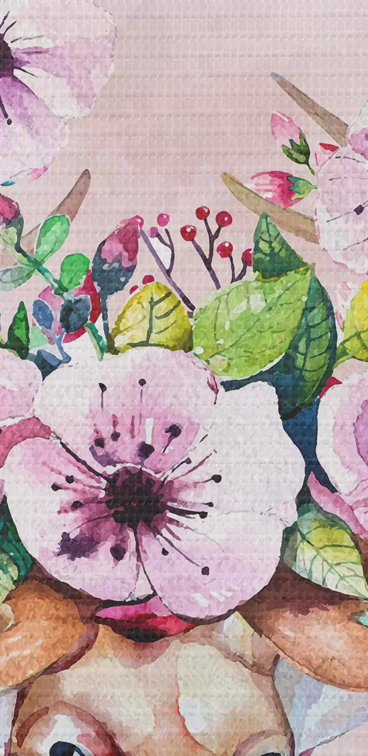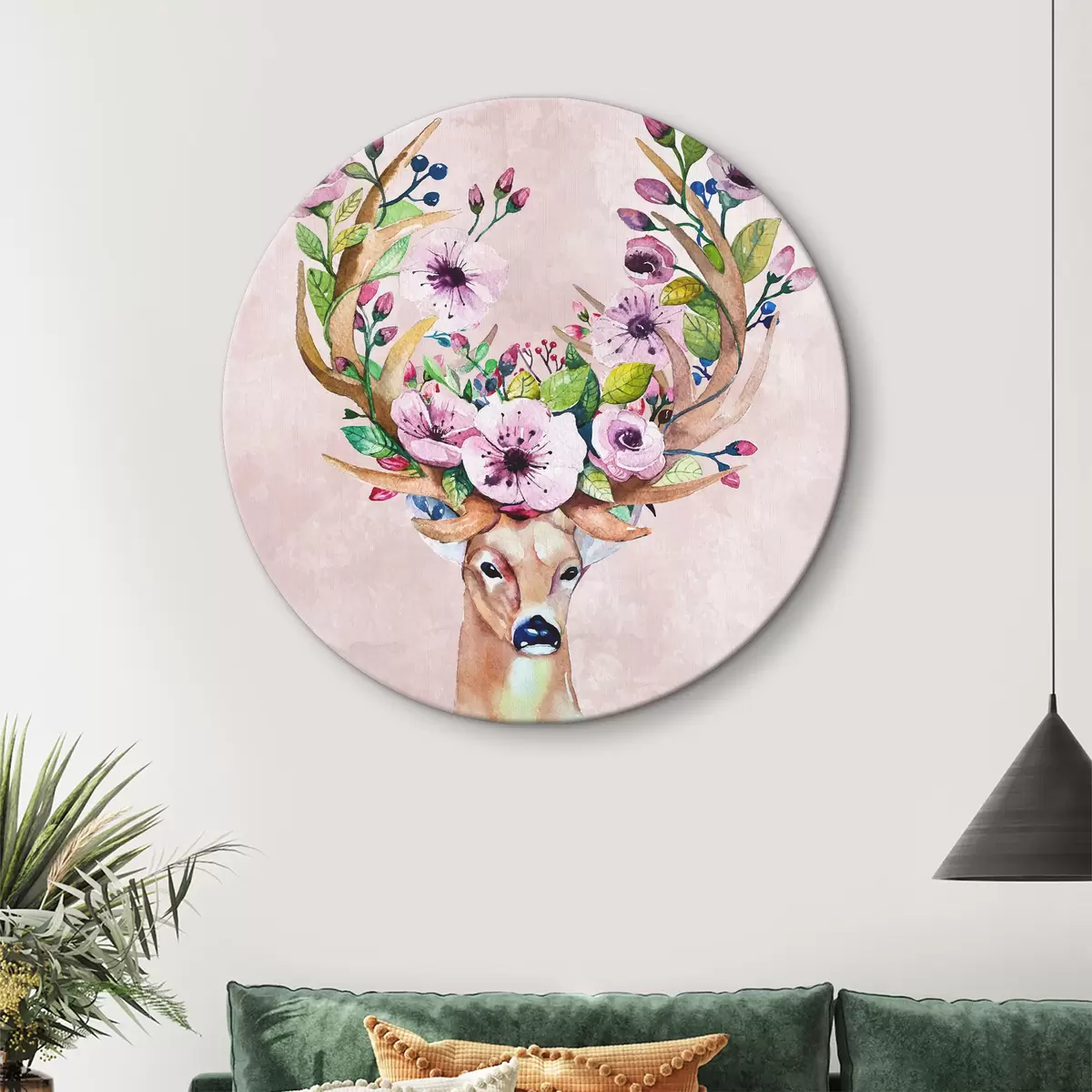 Ronde schilderijen Een aquarelschilderij van een hert met bloemen op zijn gewei Nr r38331