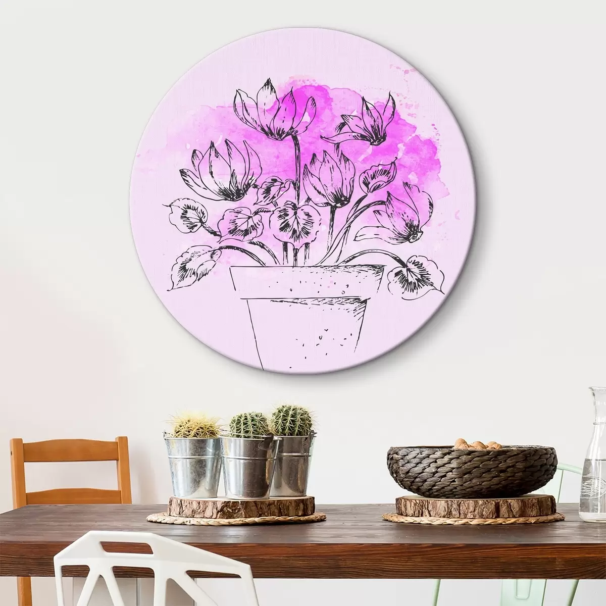 Ronde schilderijen Tekening van een potplant Nr r38332