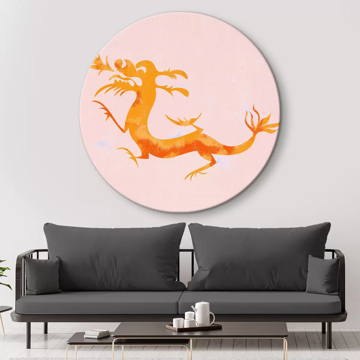 Ronde schilderijen Oranje draak met lange staart Nr r38336